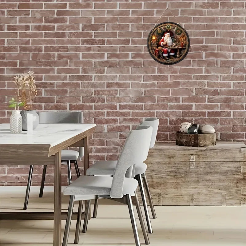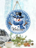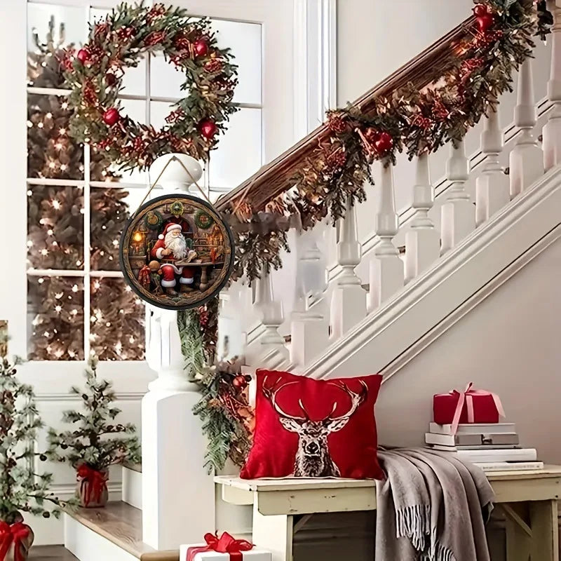 1pc Santa Claus Wood Sign Christmas Welcome Round Front Door Sign for Room Hanging Decor