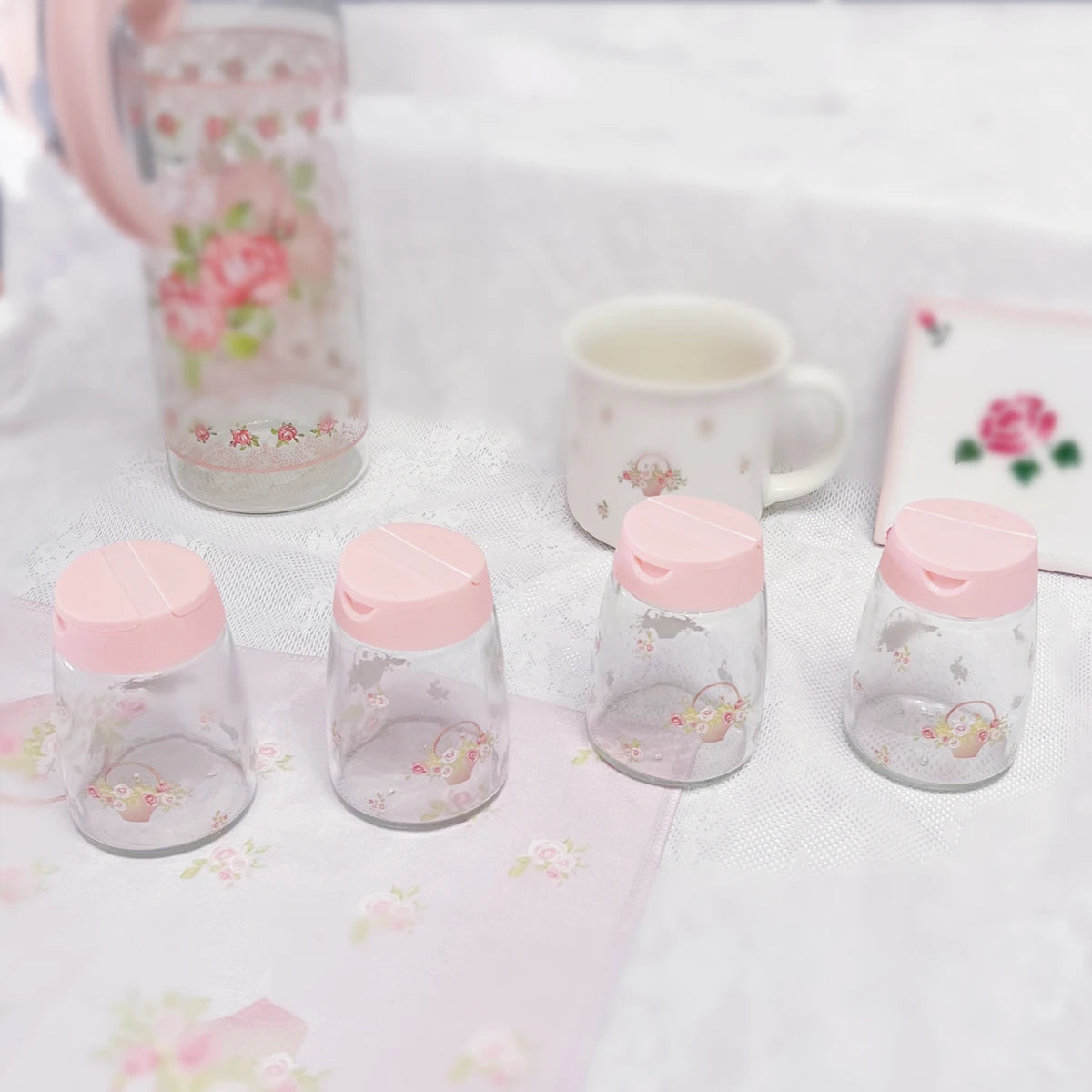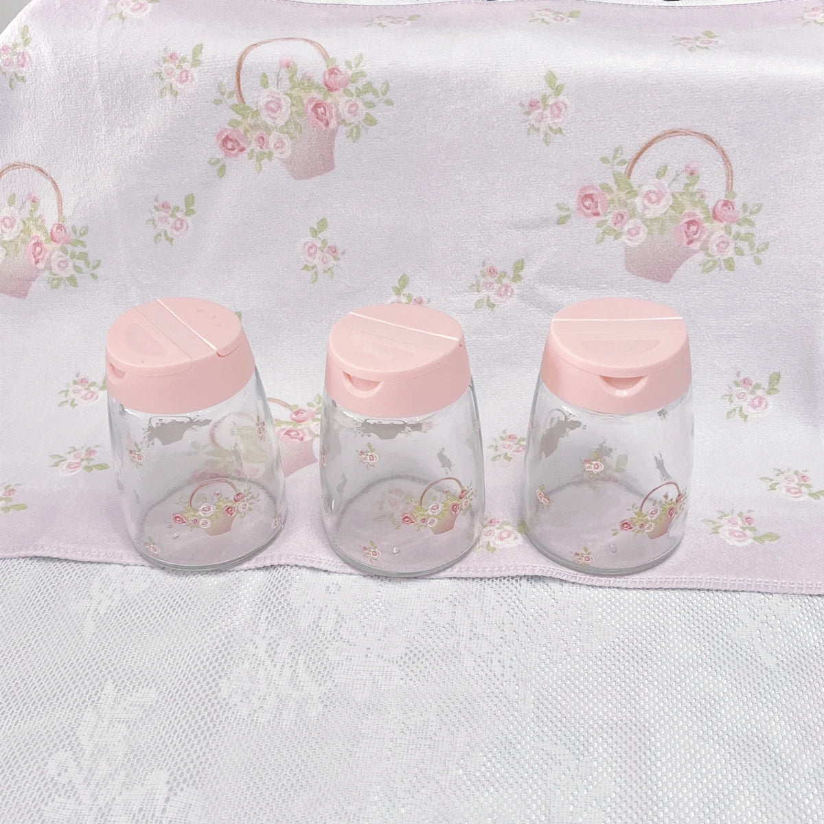 1pc Spices Glass Seasoning Jar Pink Sugar Bowl Salt Shaker Seasoning Container Kitchen Supplies Storage Set Spice Boxes