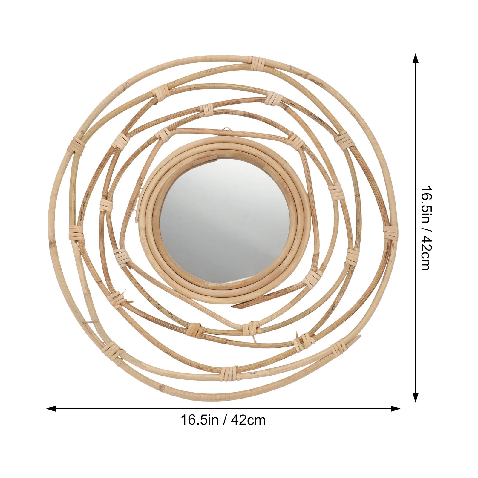 1Pc Willow Weaving Wall-mounted Mirror Home Decorative Makeup Mirror Khaki