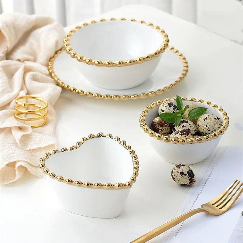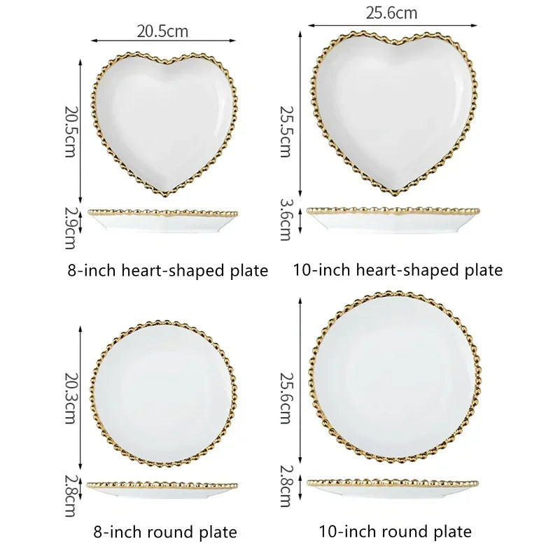 1pcs Ceramic Large Rice Bowl Heart-shaped Tableware Nordic Phnom Penh White Round Salad Plate Steak Dish Dinnerware Dinner Plate