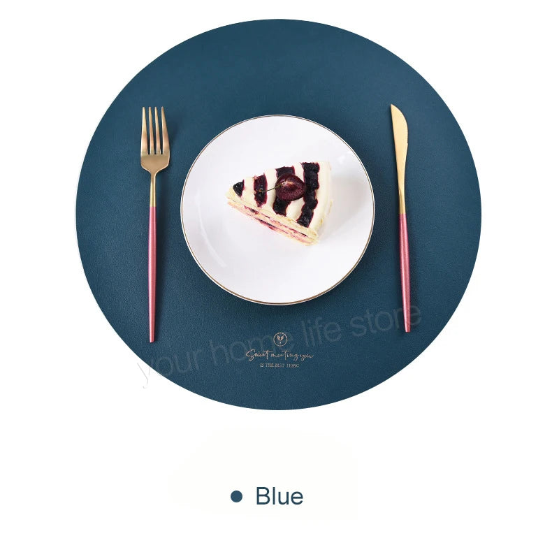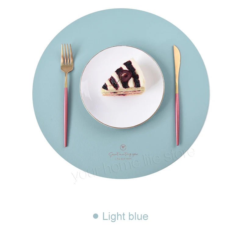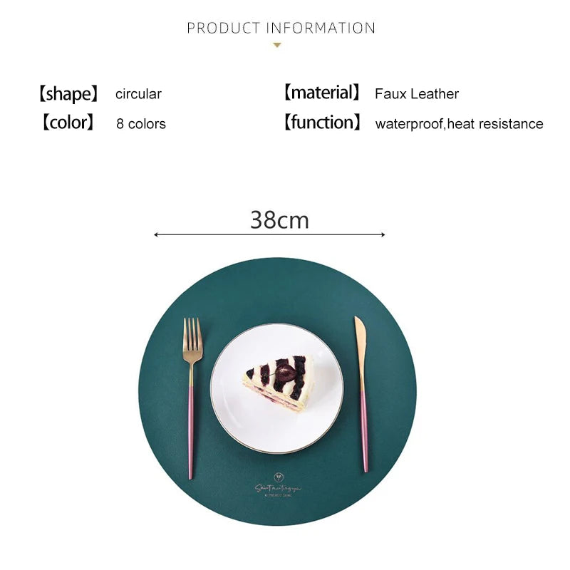 2/4/6PCFaux Leather Placemats with Coasters,Round Place Mats for Kitchen Dining Patio Table,Non-Slip,Heat Resistant,Washable