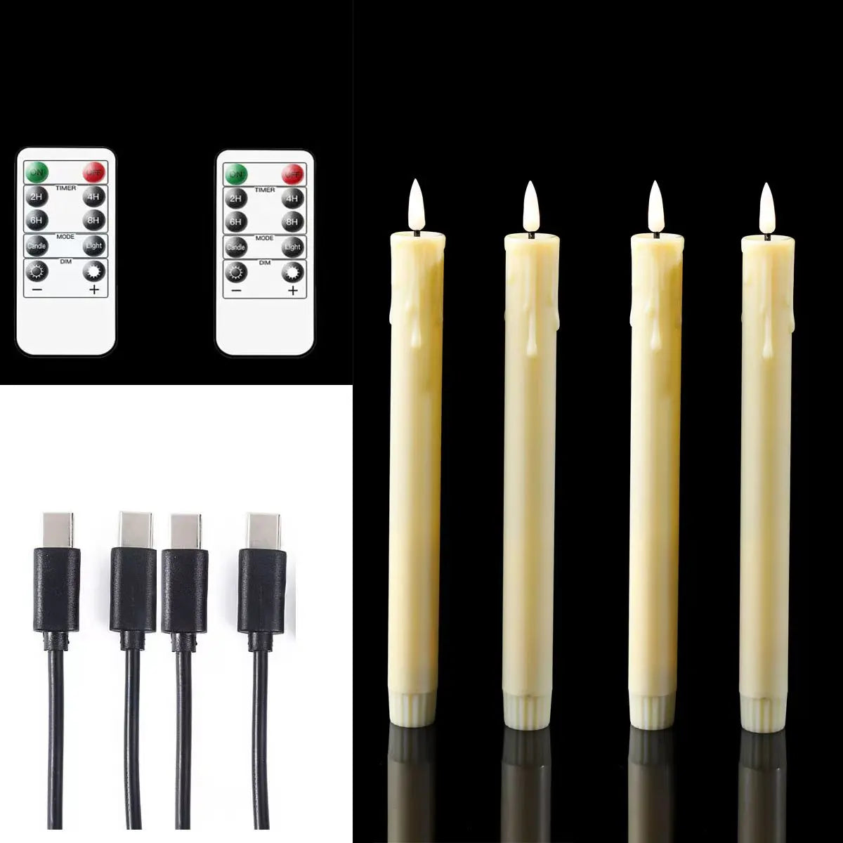 2 or 4 Pcs Flameless 10 Inch Remote LED New Year Decorative Taper Candles USB Charge,Warm White Plastic Rechargeable Candle Room