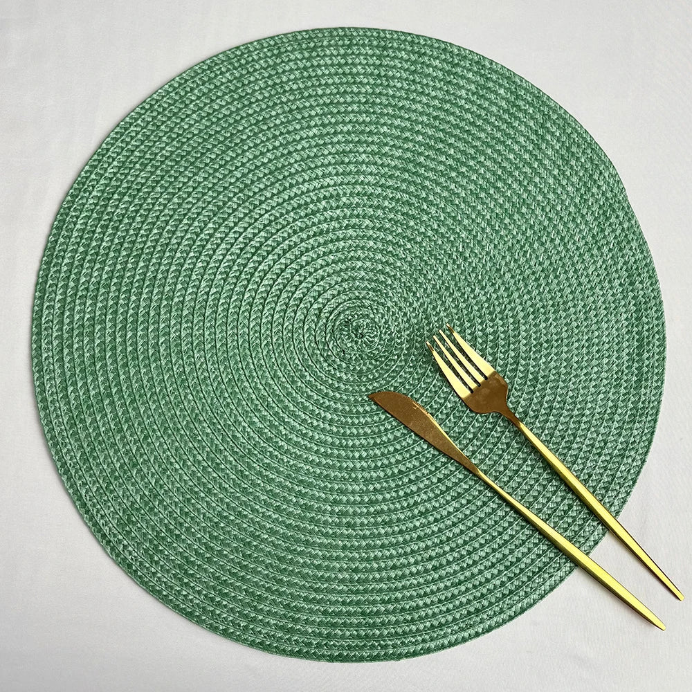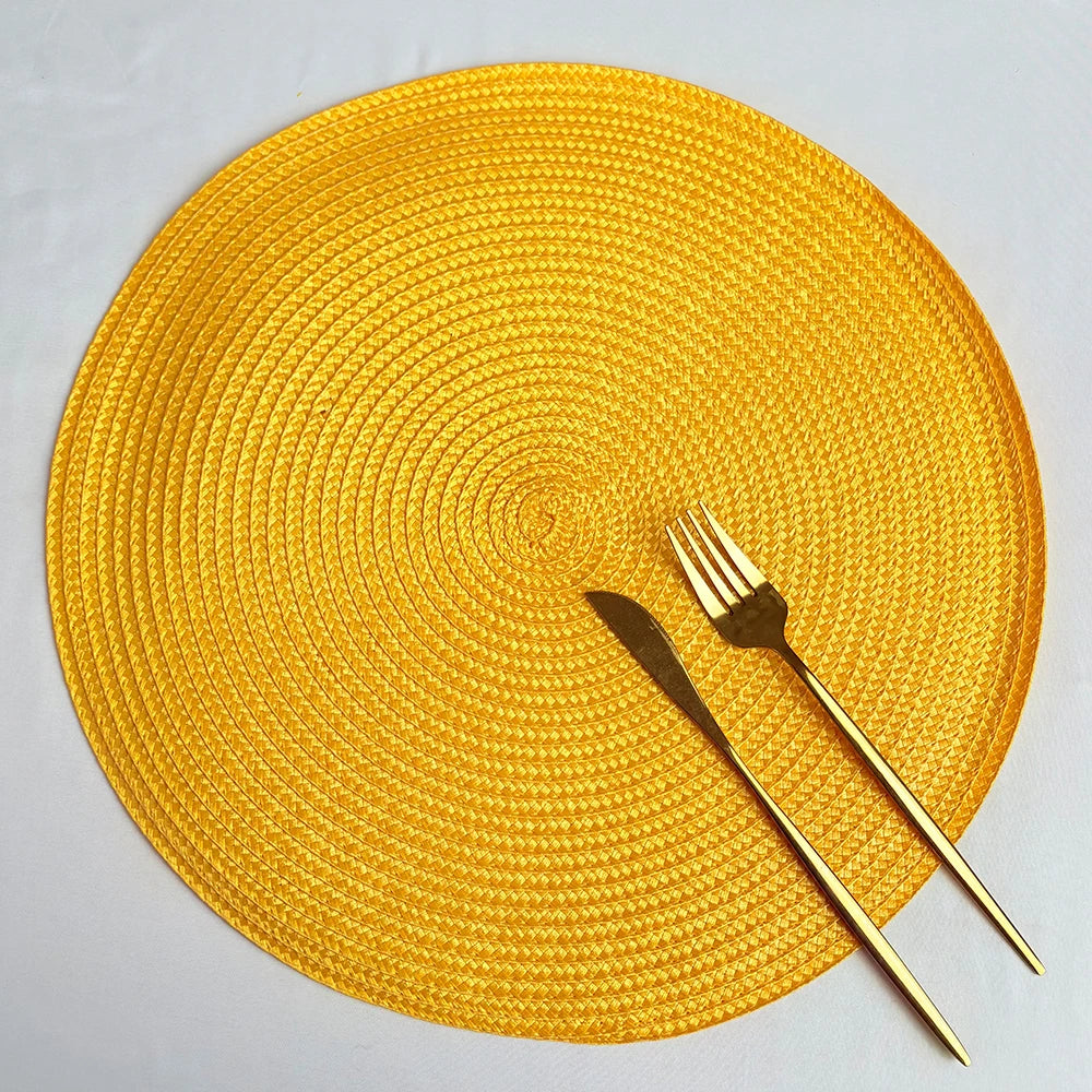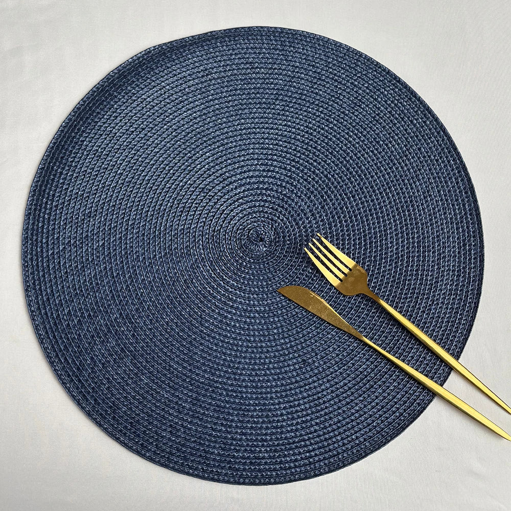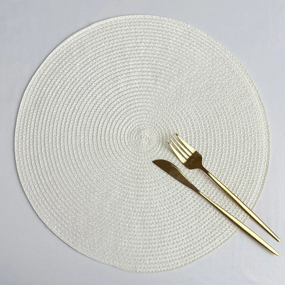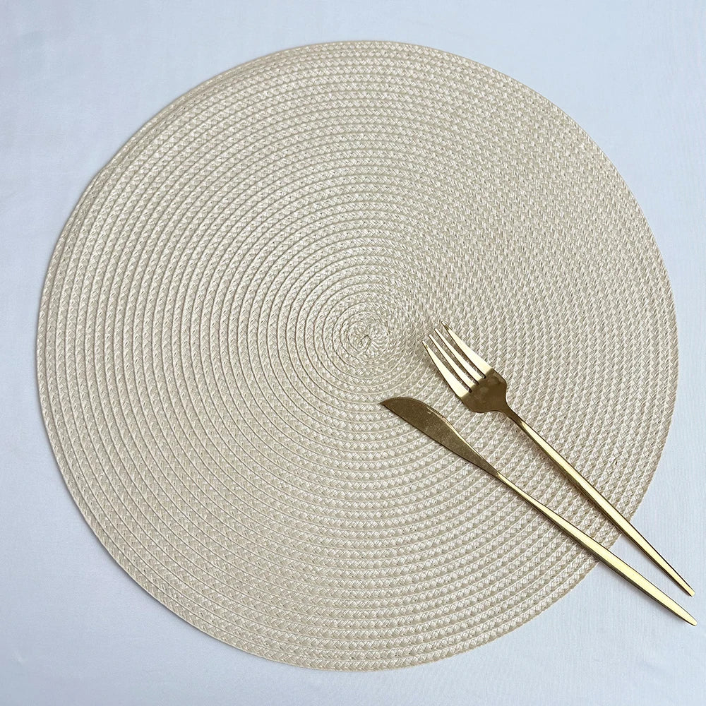 2 PCS European Style Round Woven Mats & Pads, Heat-Resistant and Non-Slip Place Mats for Dining Table, Ideal for Outdoor Picnic