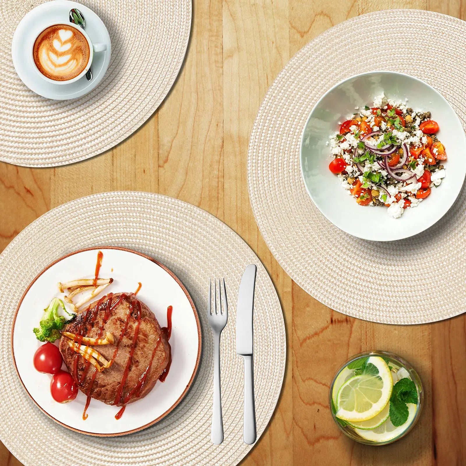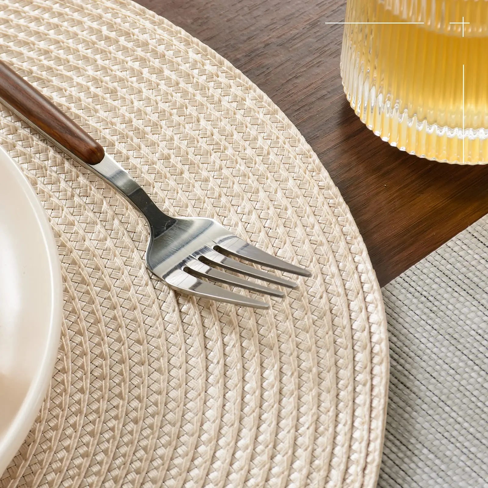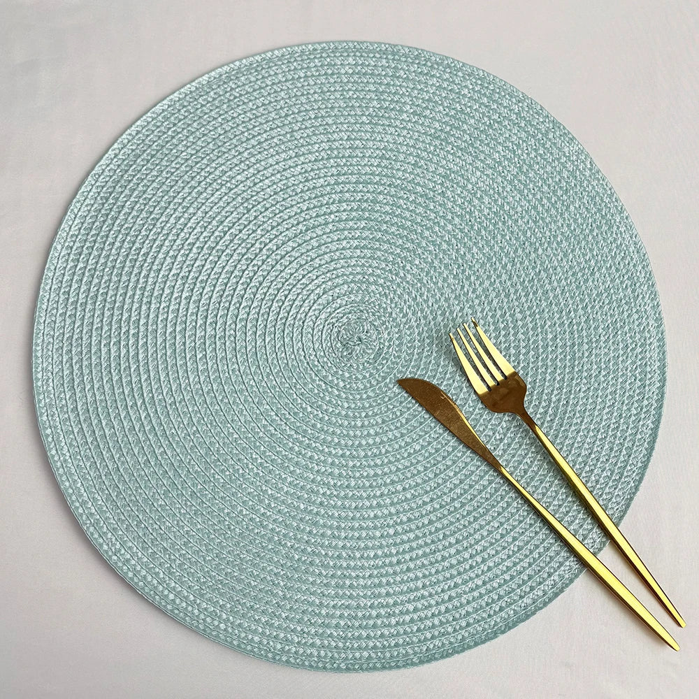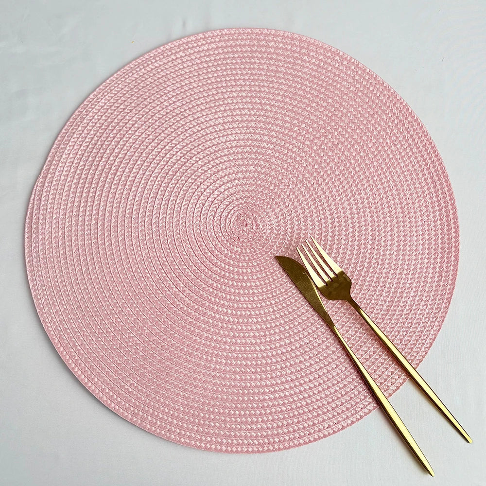 2 PCS European Style Round Woven Mats & Pads, Heat-Resistant and Non-Slip Place Mats for Dining Table, Ideal for Outdoor Picnic