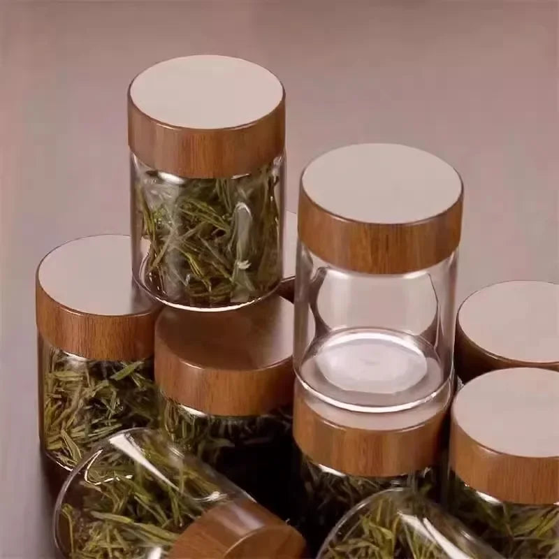 20/1PC Mini Glass Bottles Portable Coffee Beans Storage Container Tube Wood Lid Kitchen Sealed Canister Small Tea Spice Jars