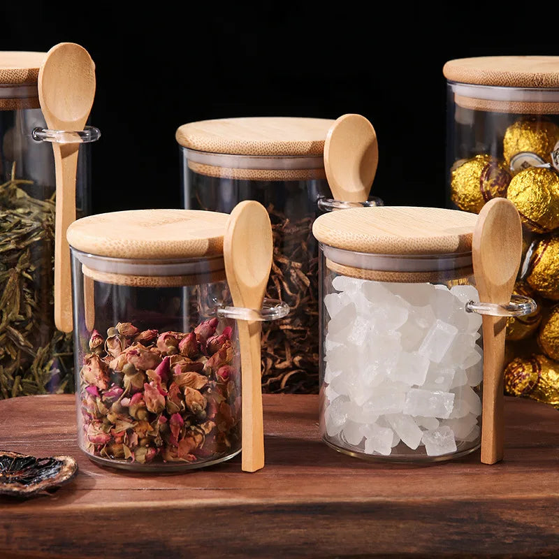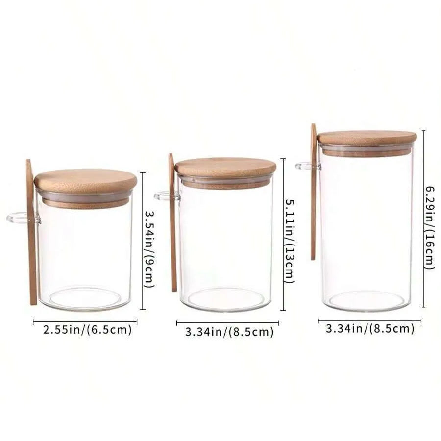 200/550/700ML Airtight Spice Jars with Lids Spoons Transparent Food Storage Containers Kitchen Organizer Pantry Supplies