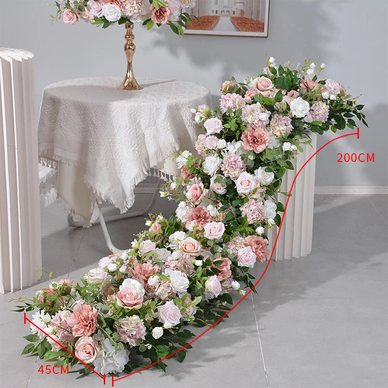 200x45CM Pink Rose Ball Wedding Arch Background Decoration Long Row Flower Table Arrangement Floral Arrangement