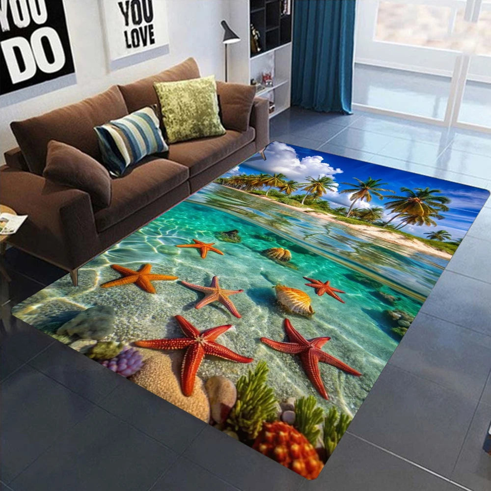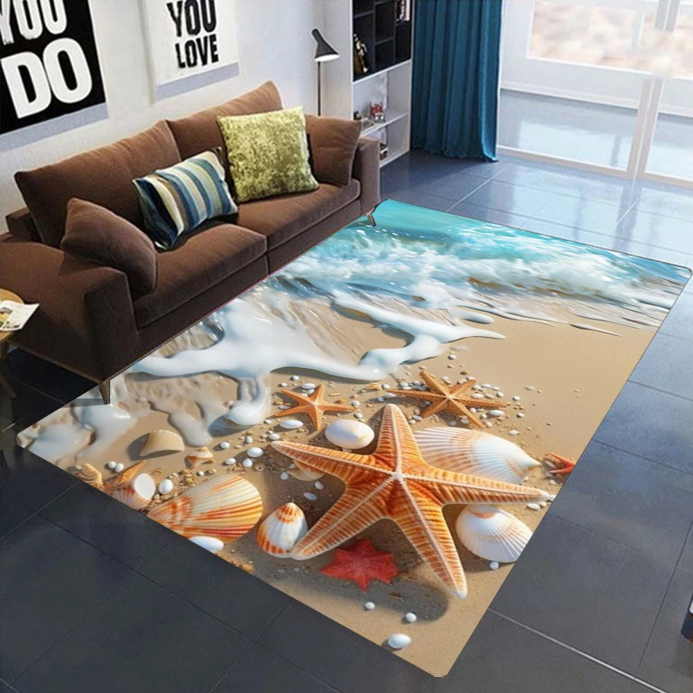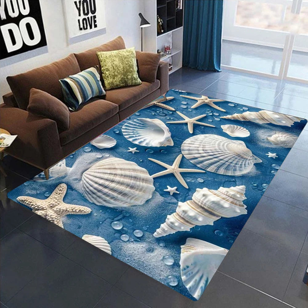 2025 New Starfish Beach Shell Sea Star Sand Carpet Rug for Living Room Bedroom Home Sofa Decoration,Kids Play Non-slip Floor Mat