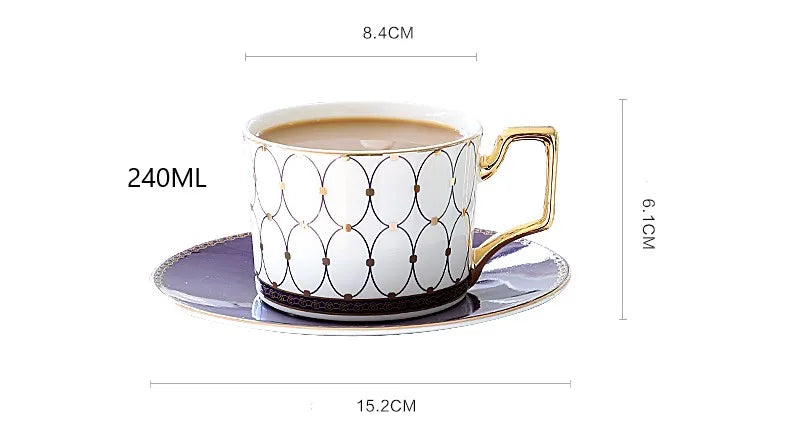 240ML, bone china espresso cup, blue noble design,porcelain coffee mugs with saucer, delicate ceramic cup of coffee, tea set