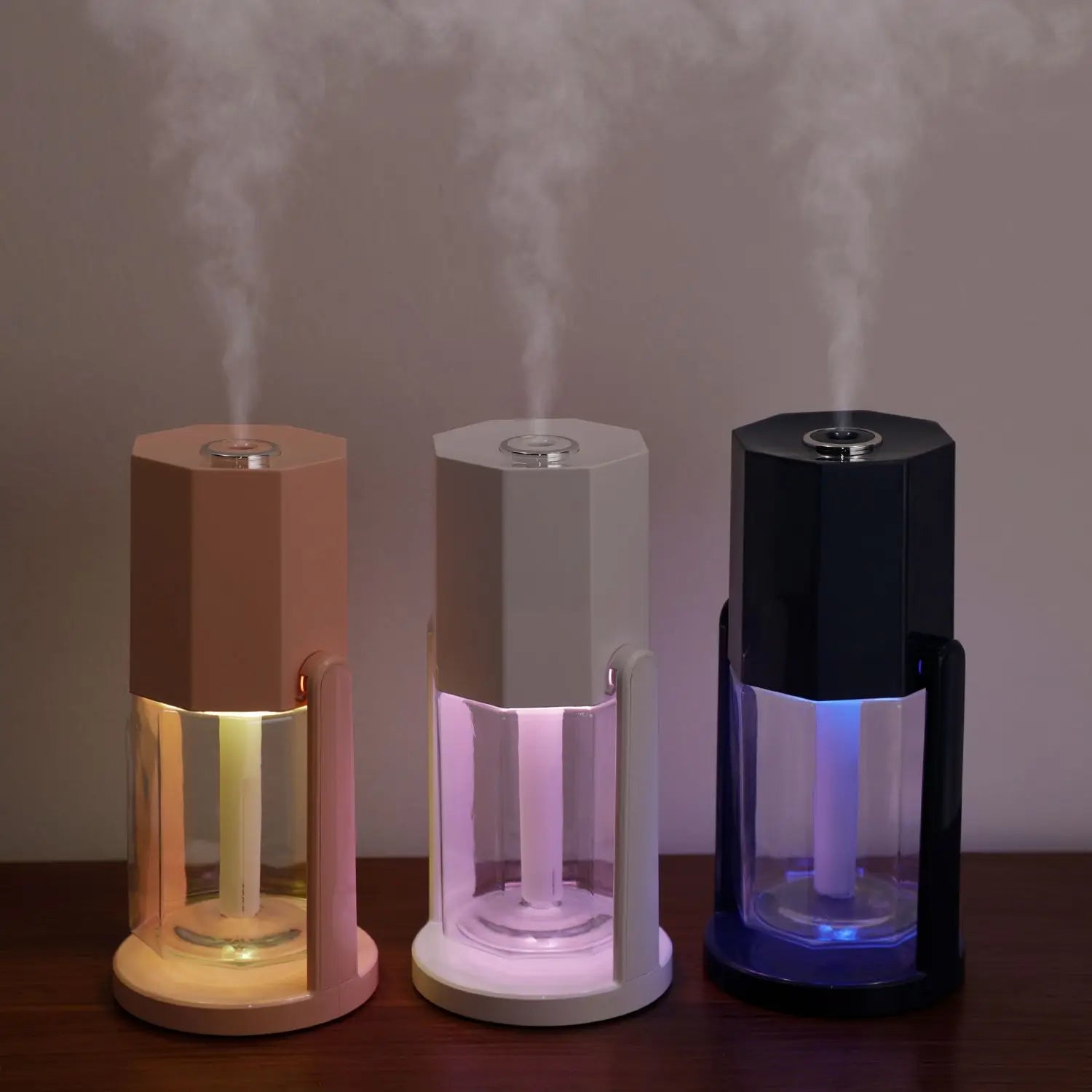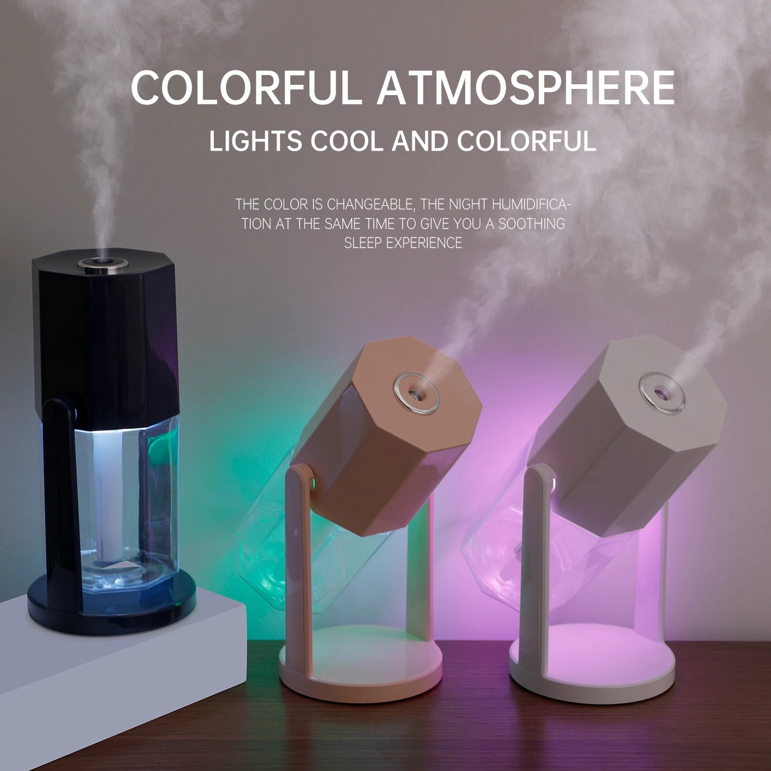 240ML Shake Head Air Humidifier for Car with Colorful Atmosphere Lights Mini Ultrasonic Humidifier for Home Office Mist Maker
