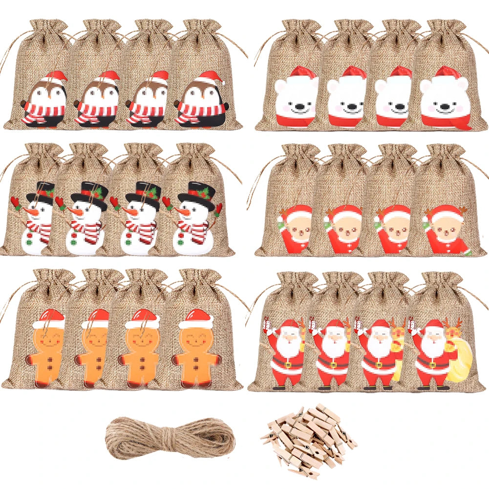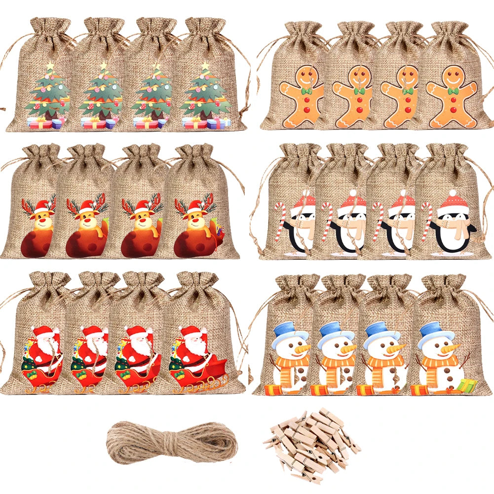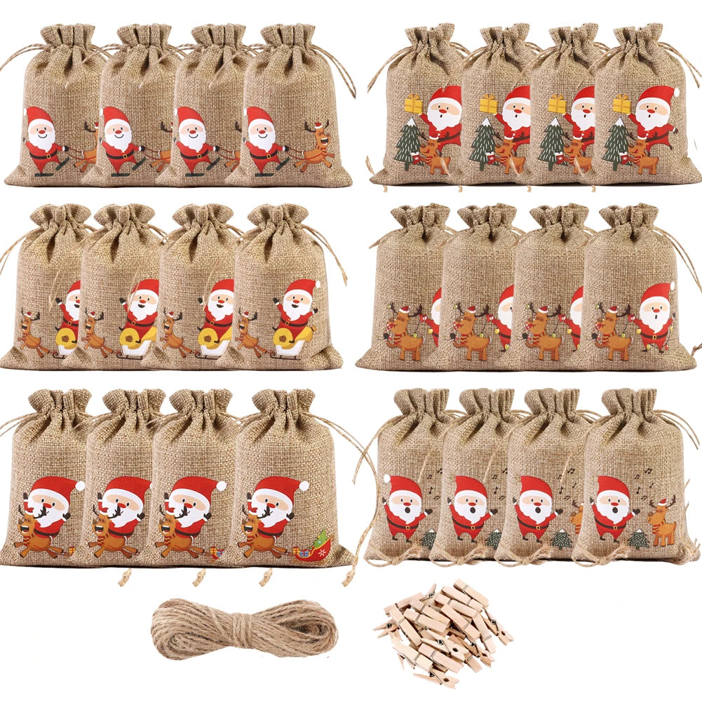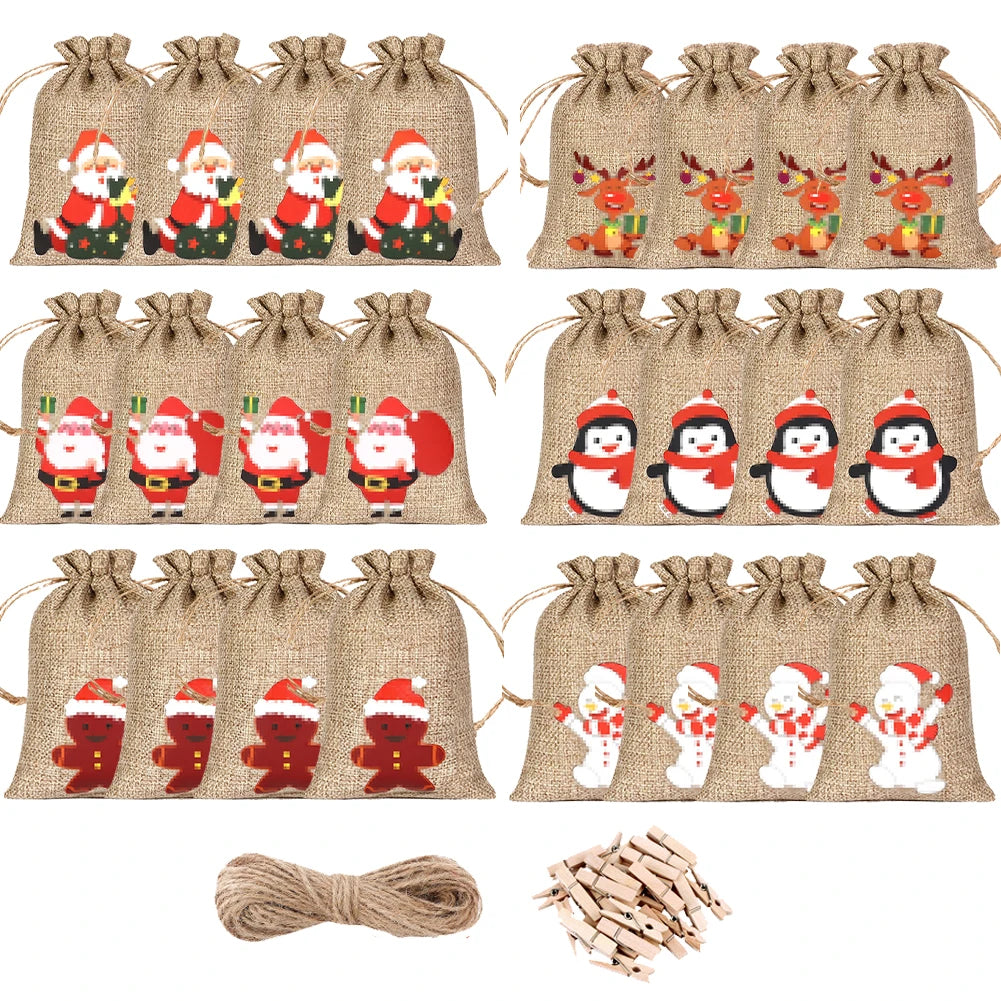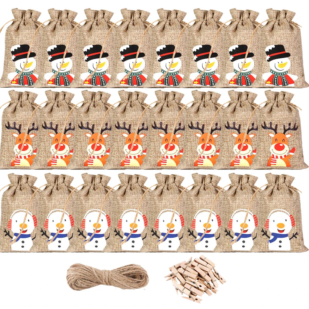 24pcs/set DIY Christmas Advent Calendar Gift Bags 24 Days Christmas Advent Calendar Bags Cloth 24 Days Countdown Set Candy Bag