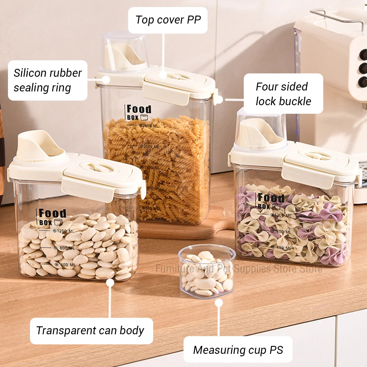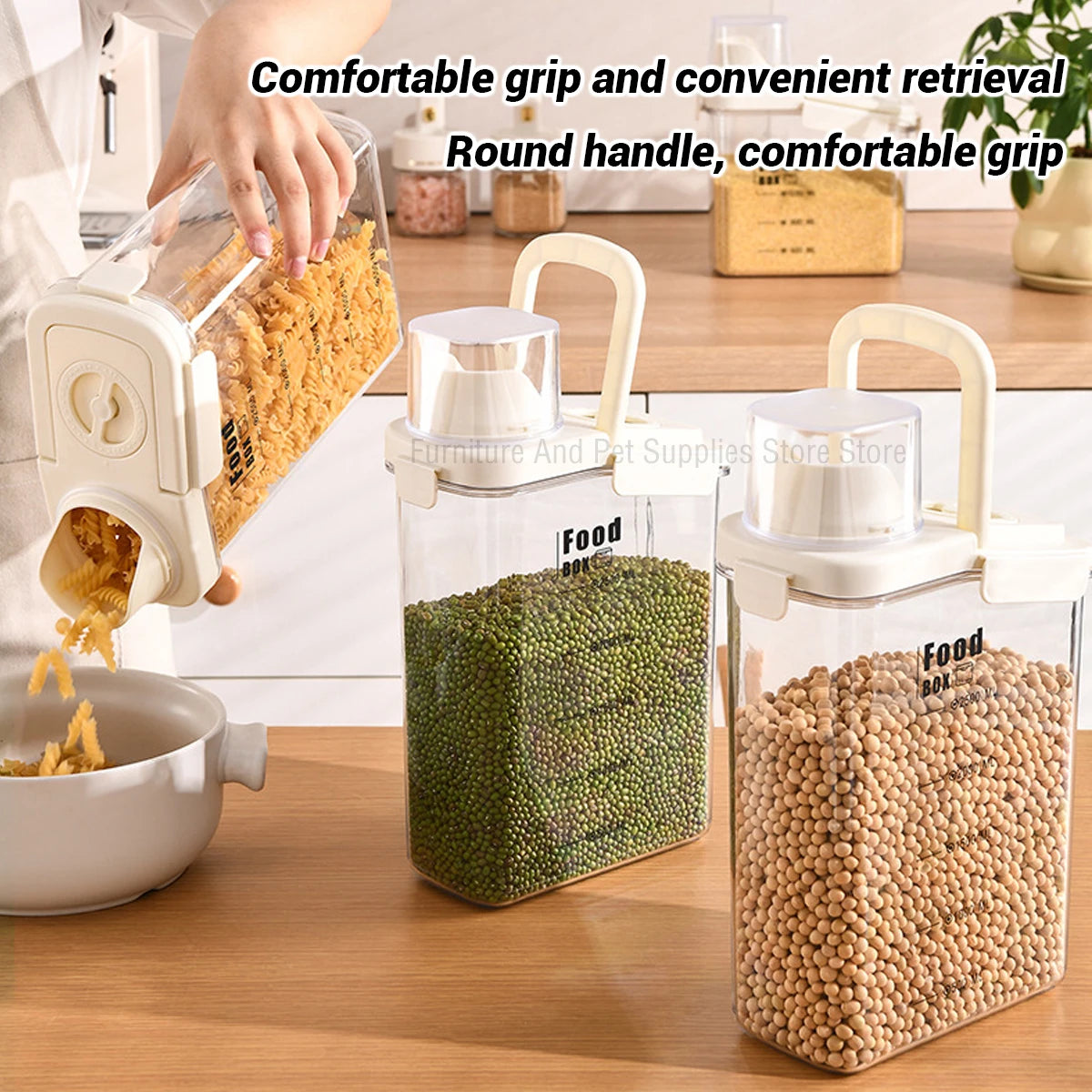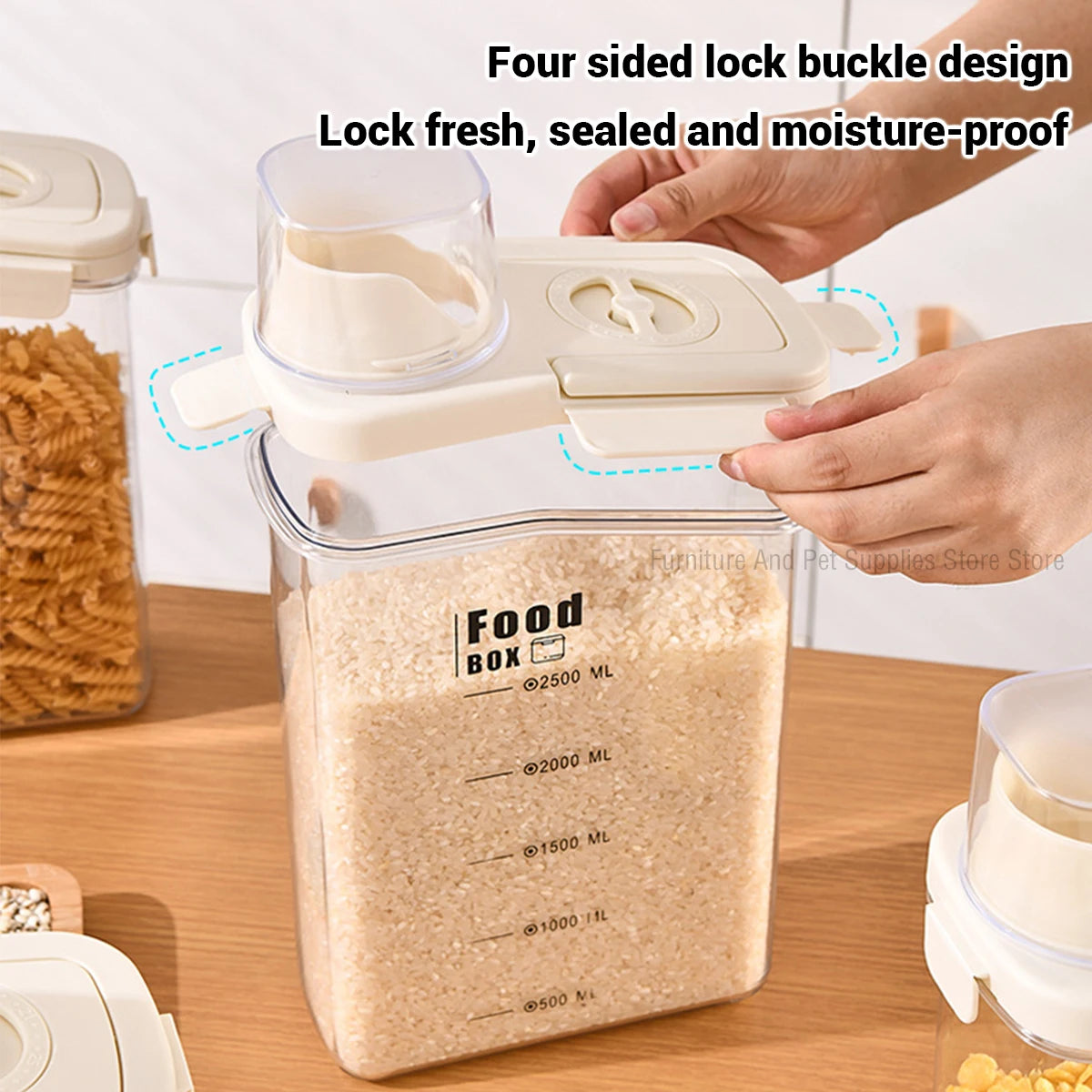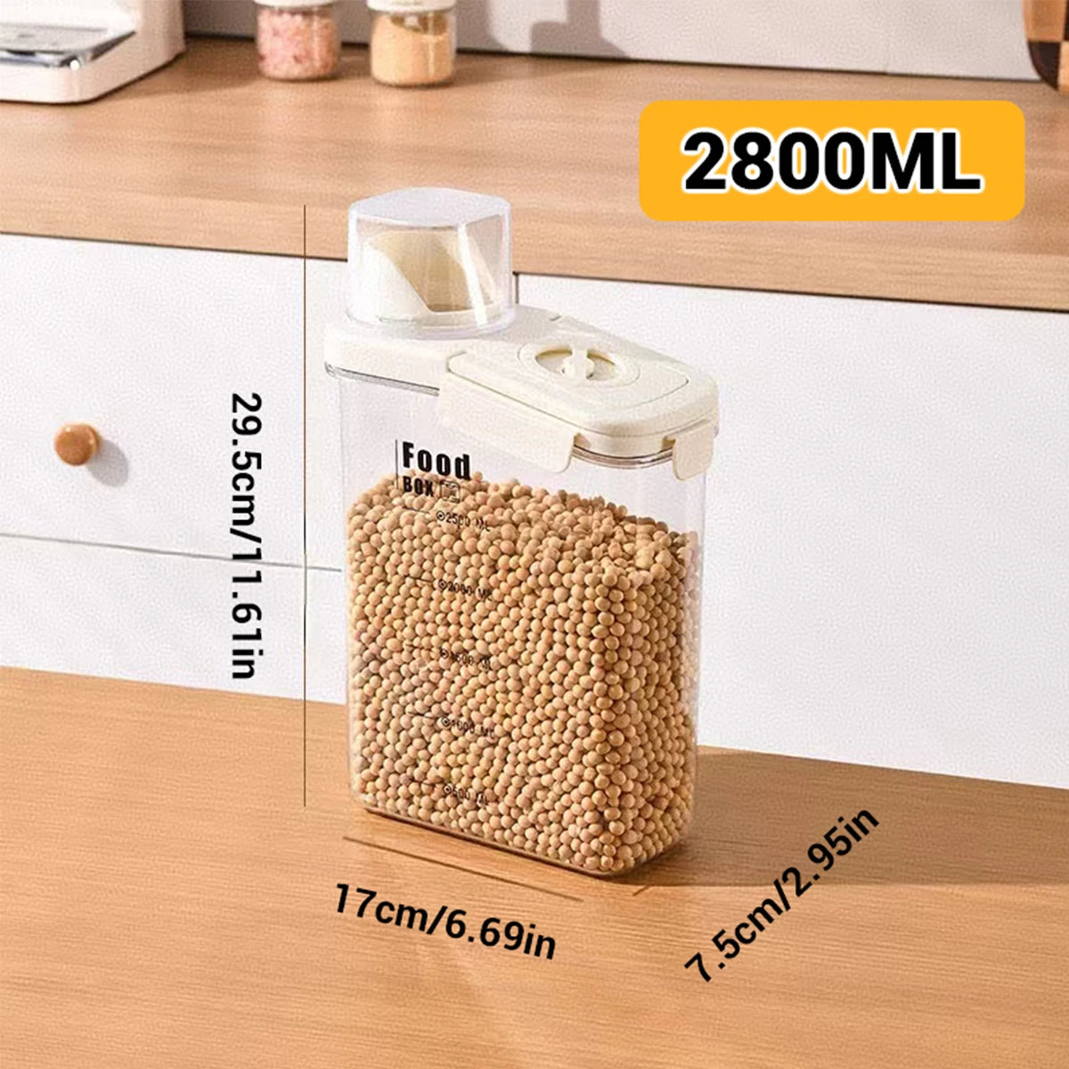 2800ML Kitchen timing storage jar, hand-held sealed miscellaneous grain jar with measuring cup buckle, moisture-proof sealed jar