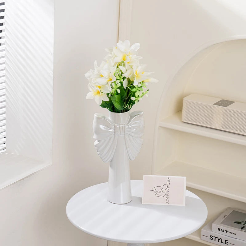 28cm Modern-Minimalist Bow Ceramic Vase, Perfect for Office & Living Room, Ideal for Hydroponic Plants & Home Decor
