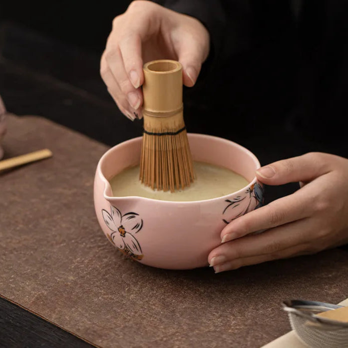 Matcha Tea Set – Sakura Pink Ceramic Bowl with Bamboo Whisk, Spoon & Accessories | NaturalBuiltHome