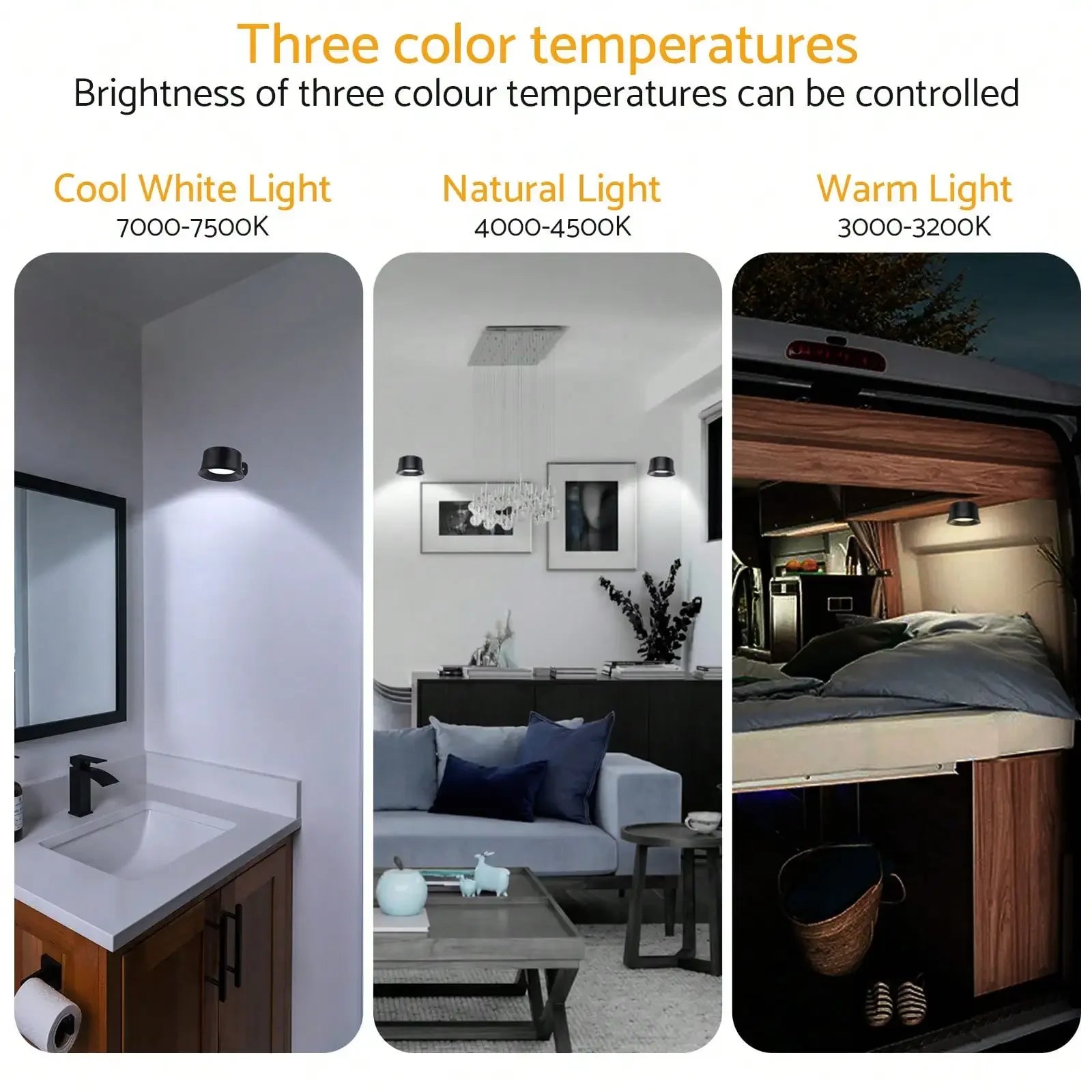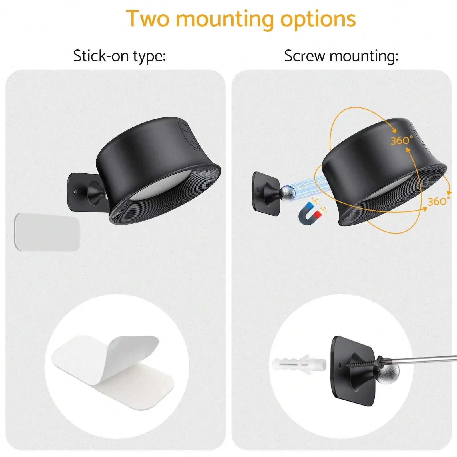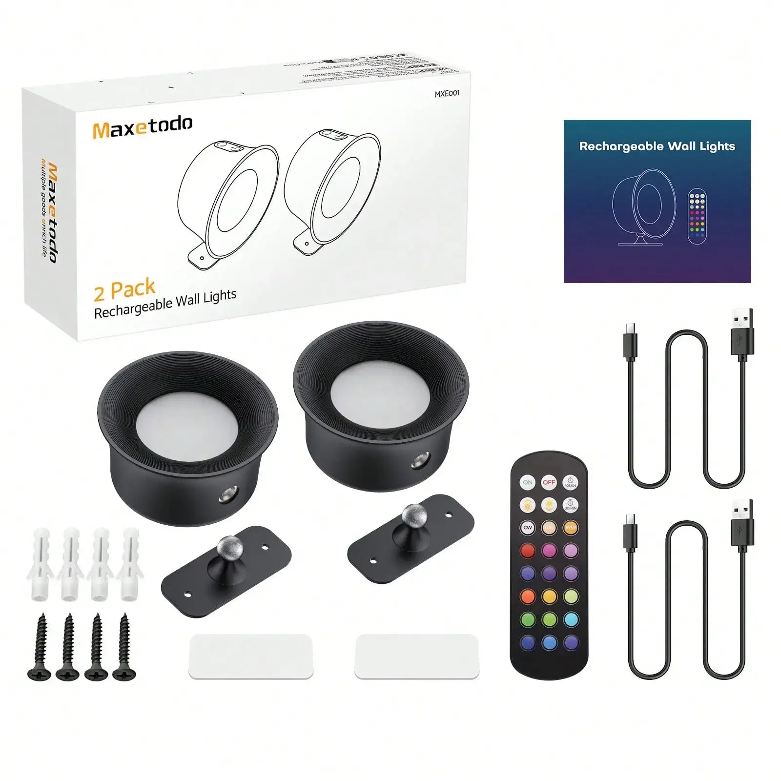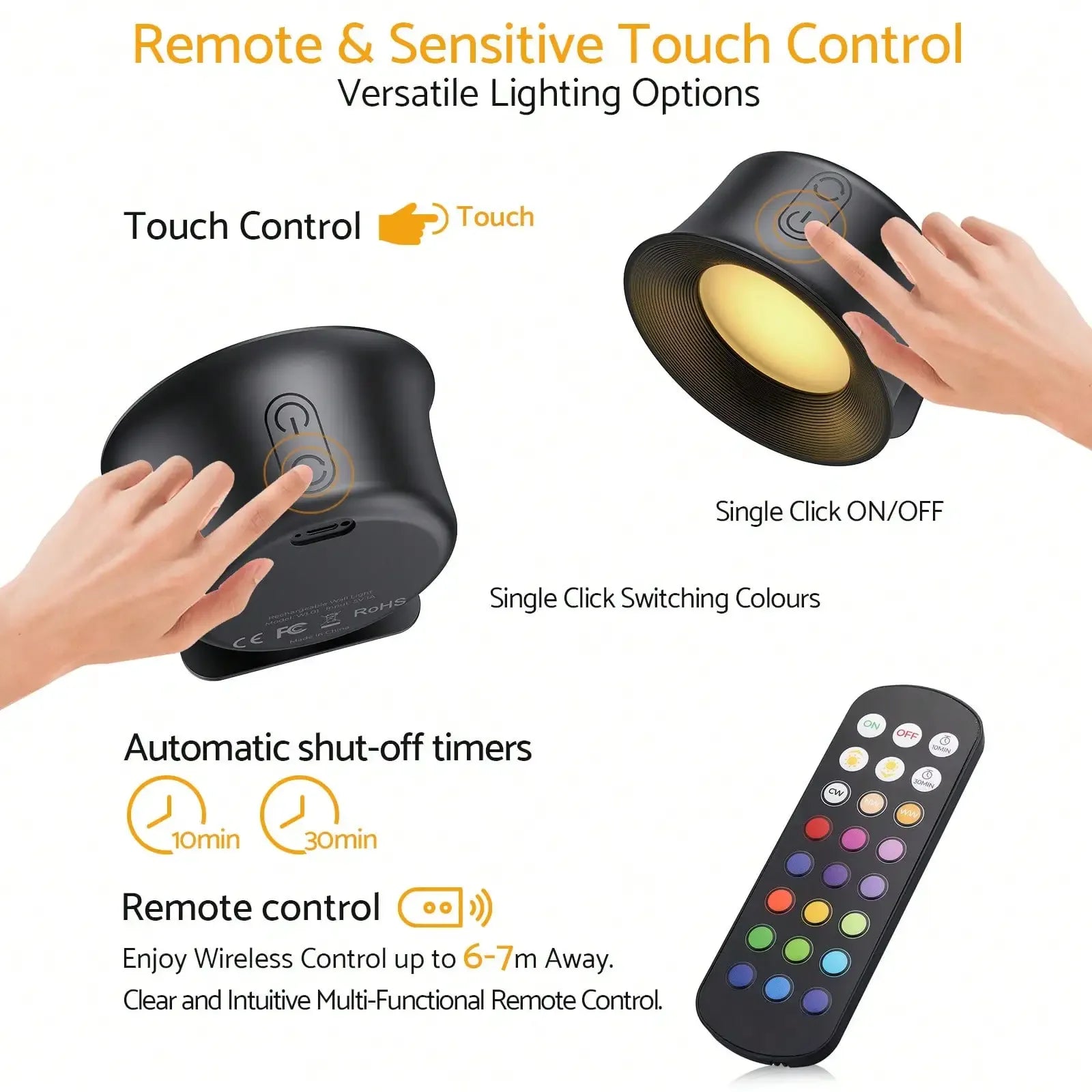 2Pcs Removable RGB LED Rechargeable Adhesive Magnetic Wall Lights 15 Color Lighting 360° Rotation Touch with Remote Control