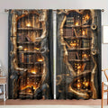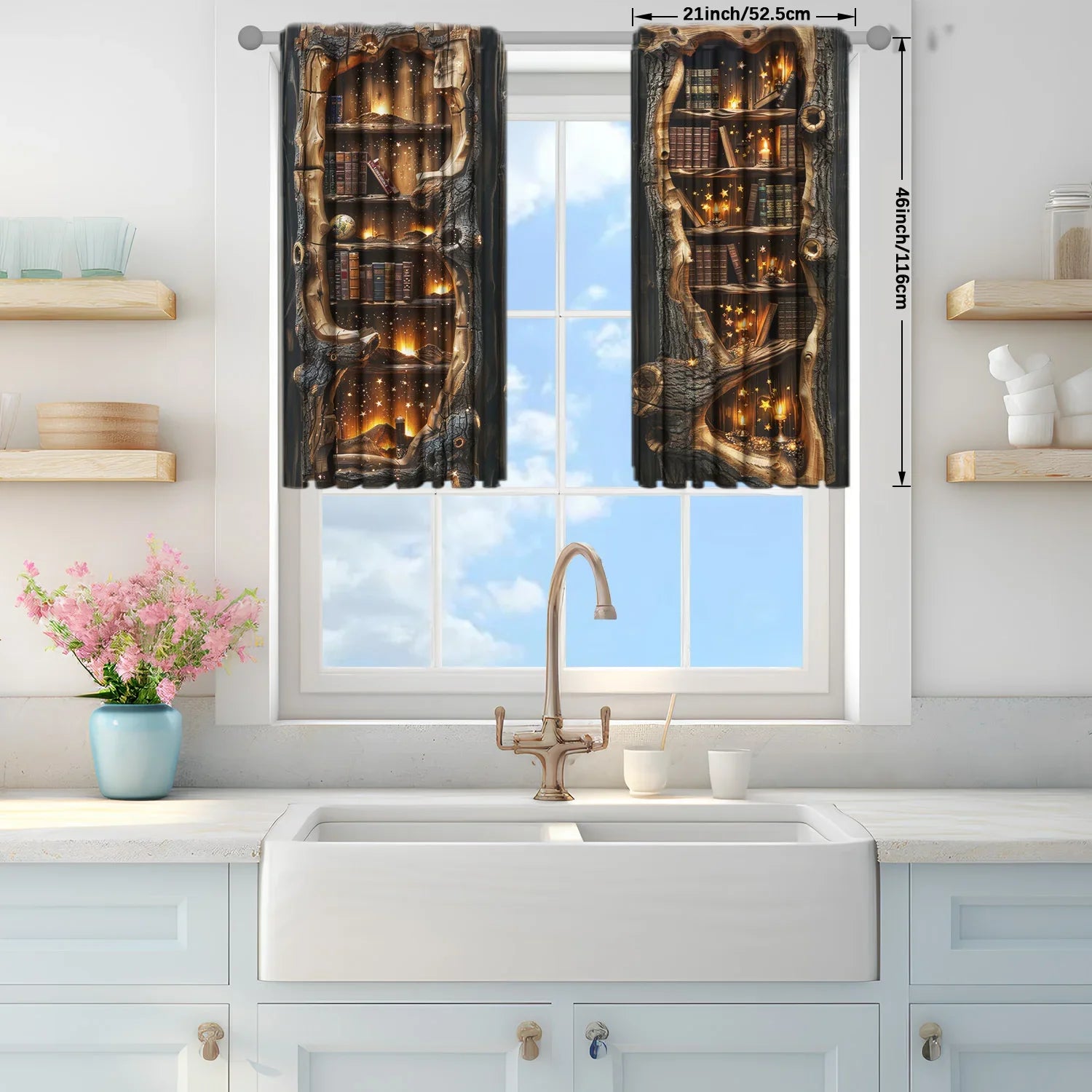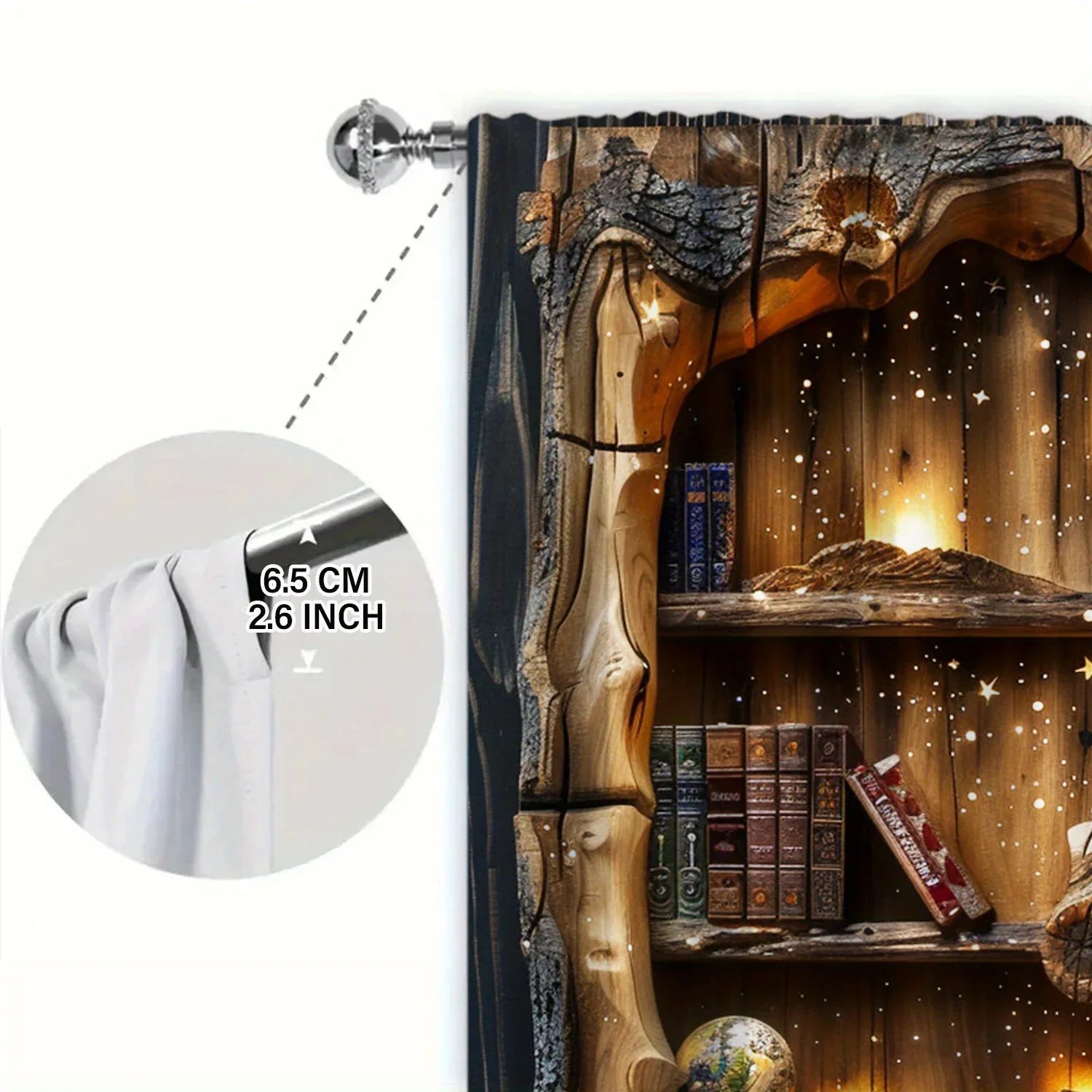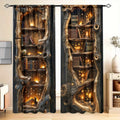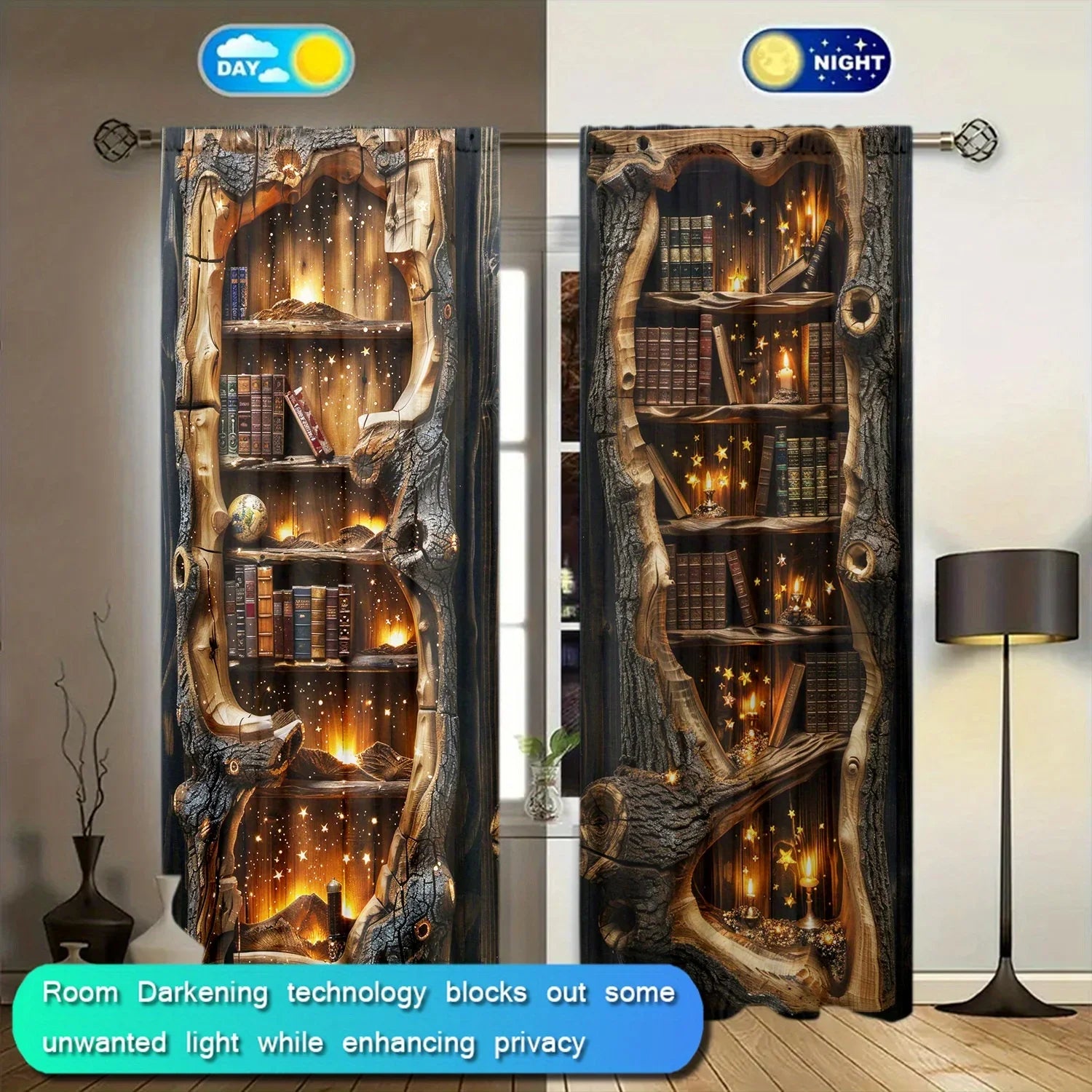 2pcs Tree Hole Bookshelf Printed Curtain - Artistic Home Decoration Curtains, All Season Decorative Curtains
