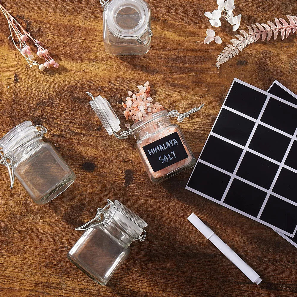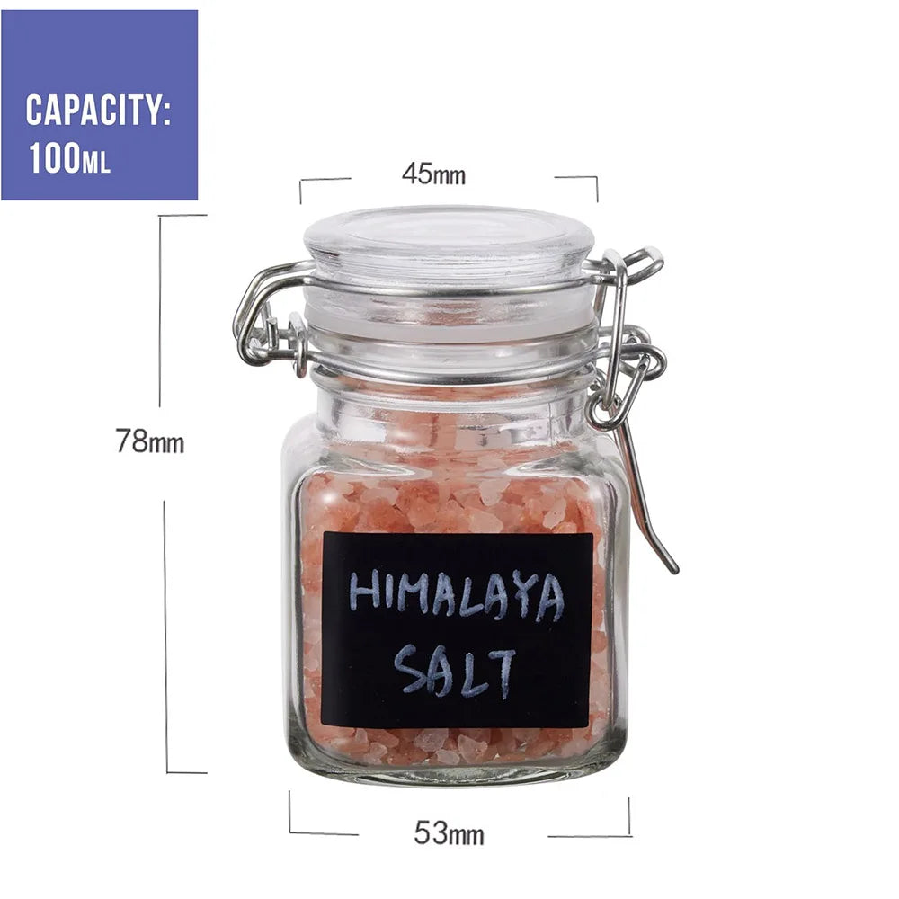 3.4oz Small Airtight Glass Spice Jars with Lids & Clip Top,Square Bottles, Herb Jars, Mason Jars, Seasoning Containers