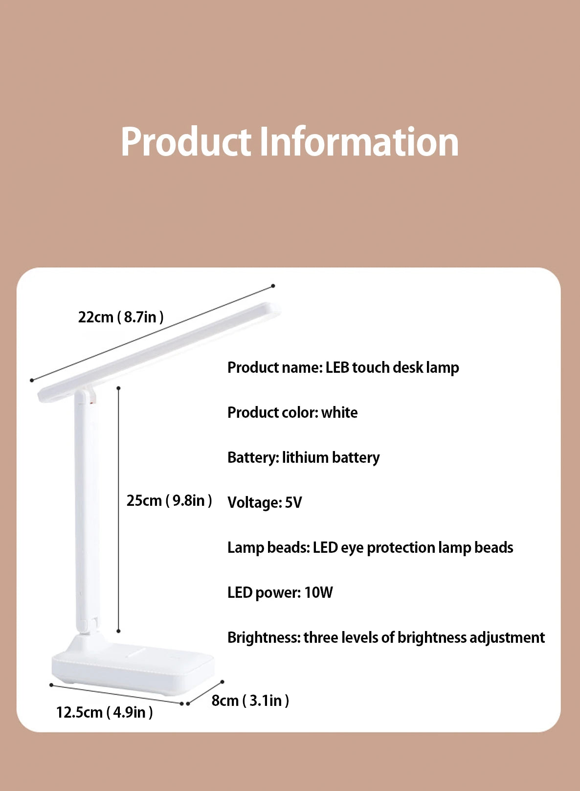 3 Color Modes,Stepless Dimming,LED Desk LampRechargeable, Eye-Caring Touch Control With USB Charging Table Lamp for Home, Office