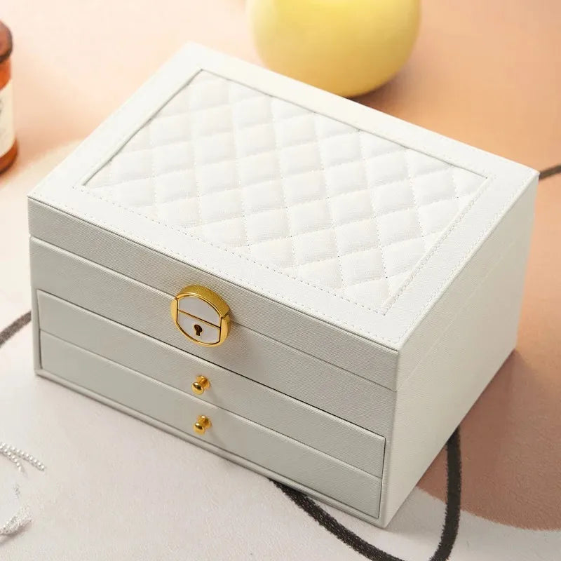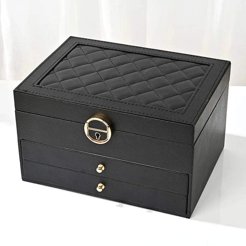 Upgrade your jewelry storage with our 3-Layer PU Leather Jewelry Box, designed for maximum organization, elegance, and security. With multiple drawers, compartments, and a lock system, it keeps rings, earrings, necklaces, and bracelets safe and beautifully arranged. Perfect for daily use, boutique displays, or as a refined gift.