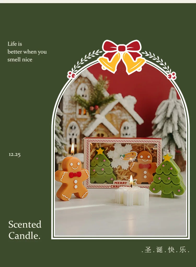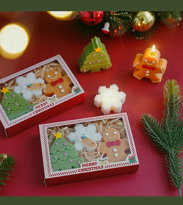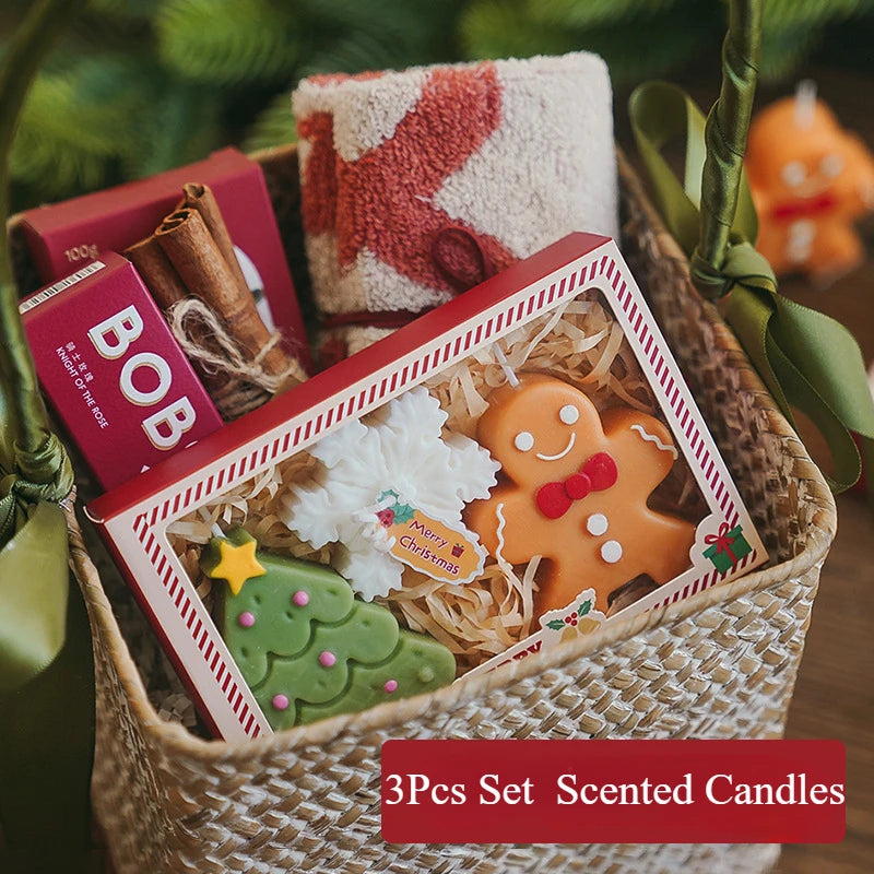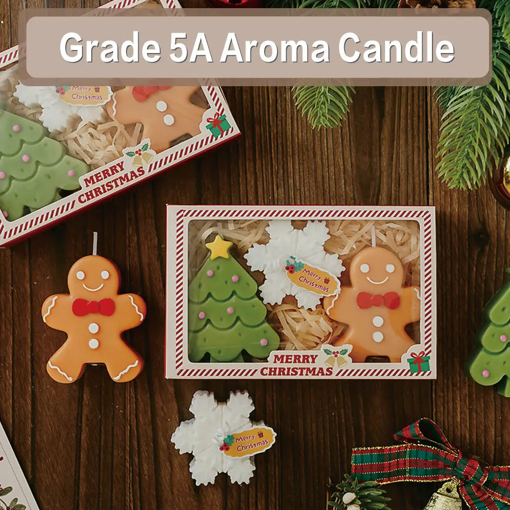 3 Pcs/Set Christmas Scented Candles Mini Holiday Aroma Candles Gift for Home Decor Snowflakes Christmas Tree Gingerbread Man