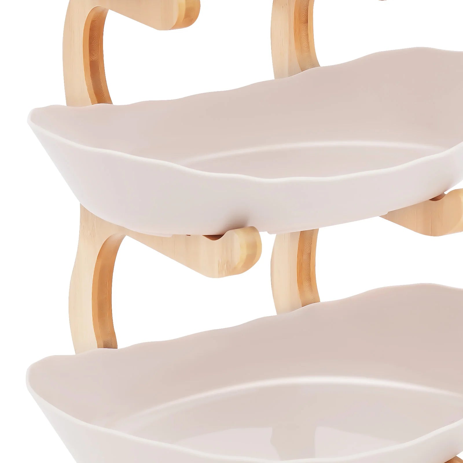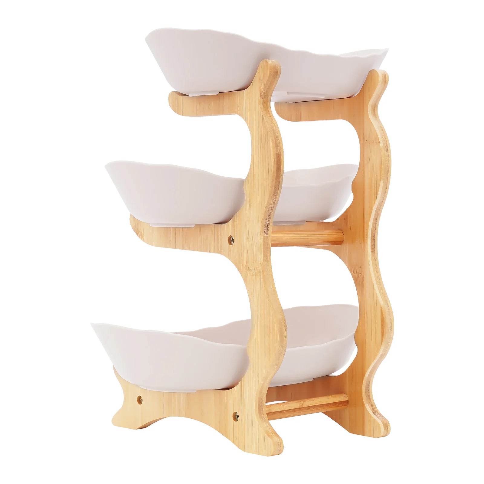 3-Tier Serving Bowls with Stand Snack Dessert Tray Plate Rack For Party Wedding Fruit Bowl with Bamboo Wood Stand 22.5*14*32cm