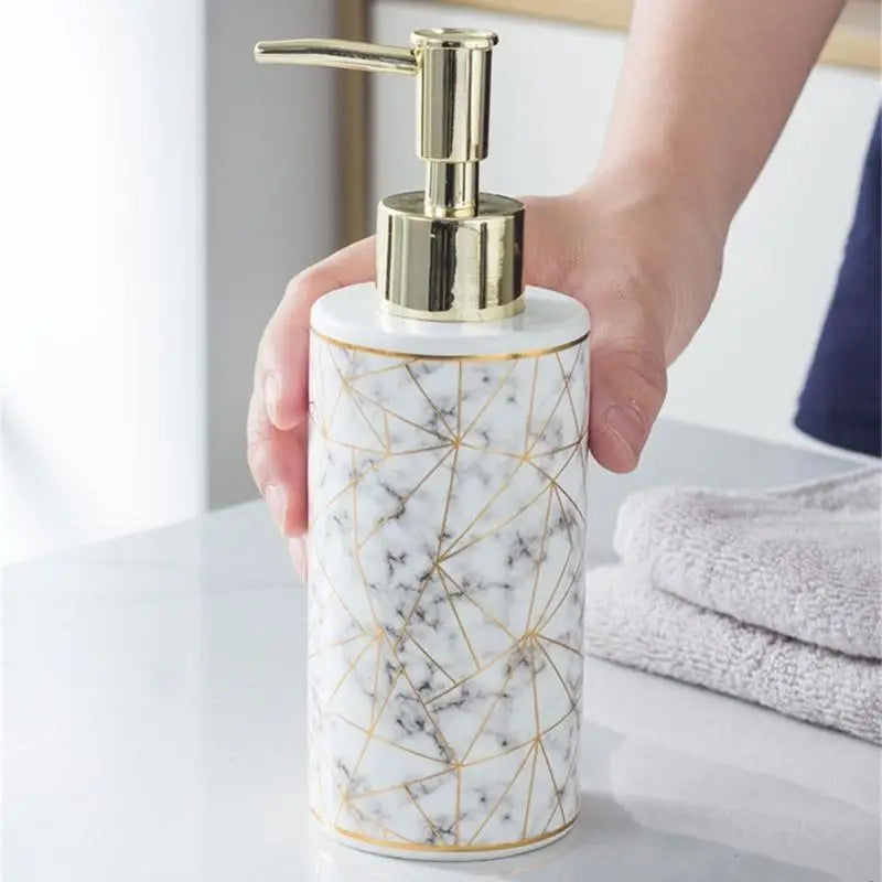 300ml Ceramic Marble Lotion Pump Dispenser Home Decors Soap Dispenser Empty Bottle for Home Bath & Shower Essential