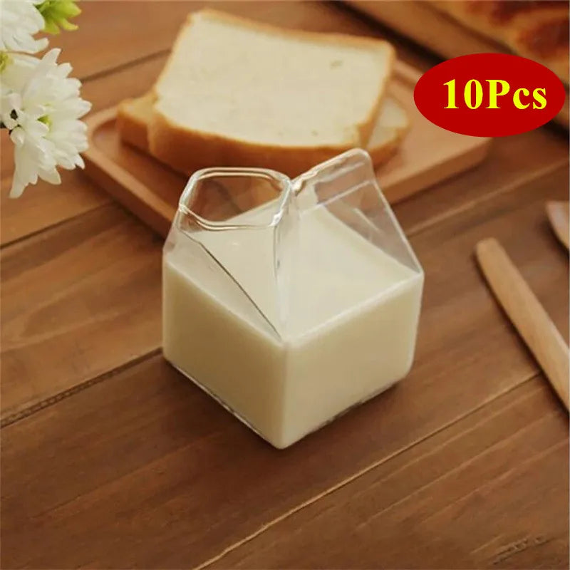 300ml Creative Transparent Milk Box Cup Milk Box Shape Glass Cups Bottle for Juice Cute CoffeeCupTea Drinkware Students Drink