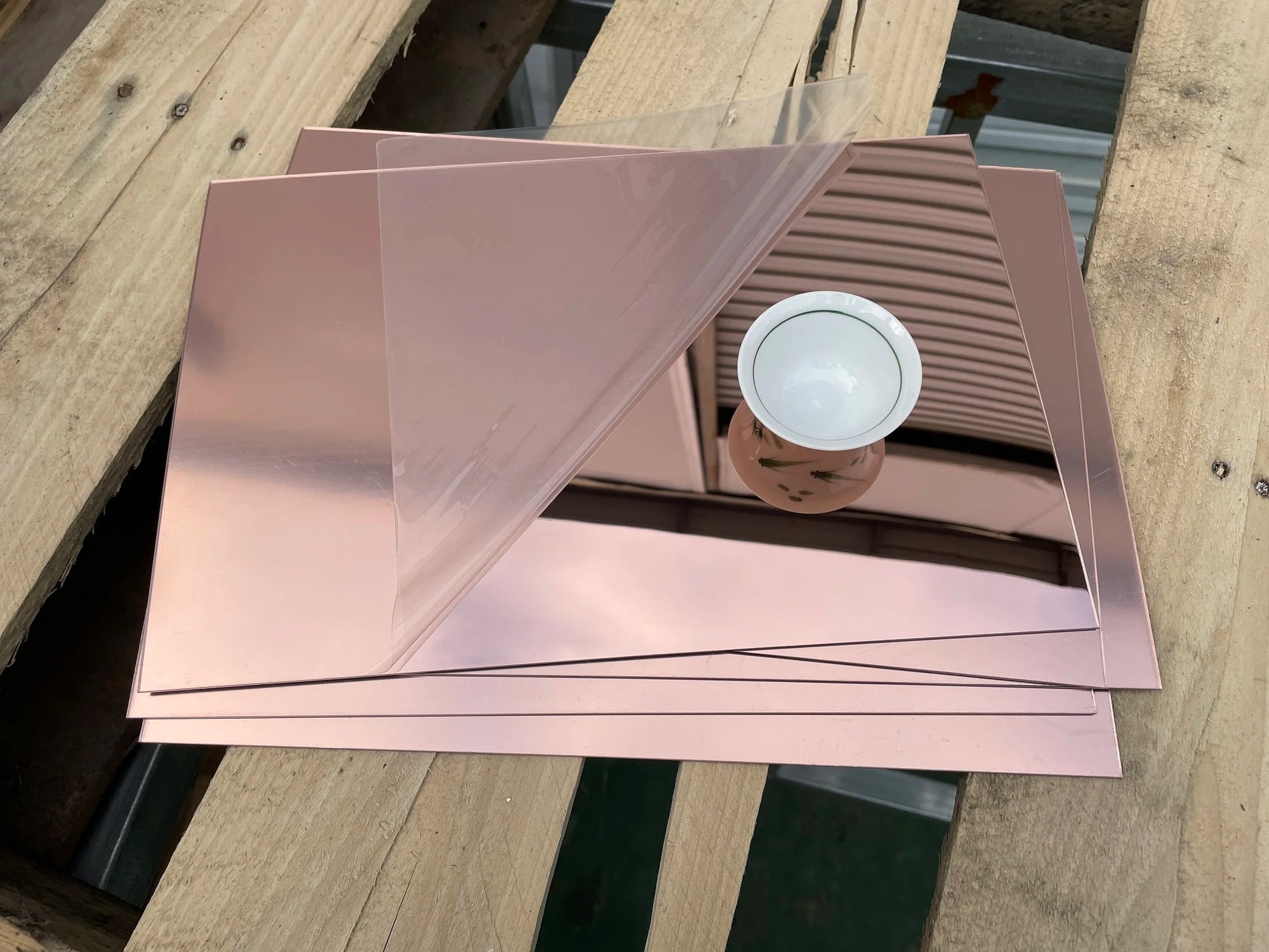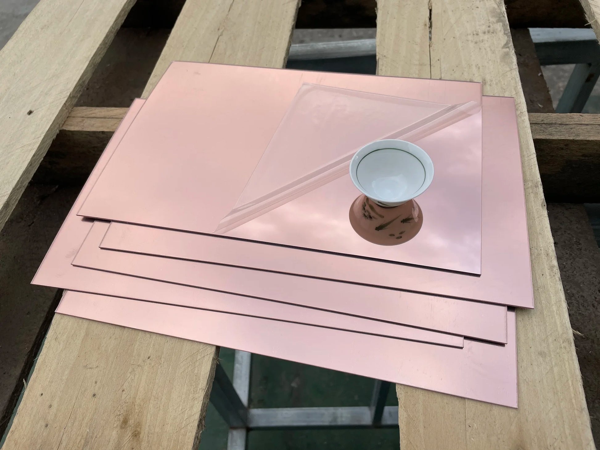 300x400x1.6MM Rose Gold Rectangle Sheet Plastic Pier Glass Hotel Decorative Lens Safe Using Acylic Plexiglass Mirror
