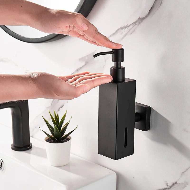 304 Stainless Steel Soap Dispenser Black Shower Shampoo Bottle Hotel Wall Hanging Press Hand Sanitizer Bottle
