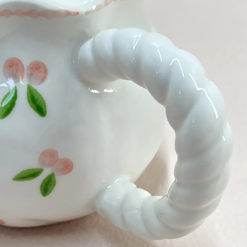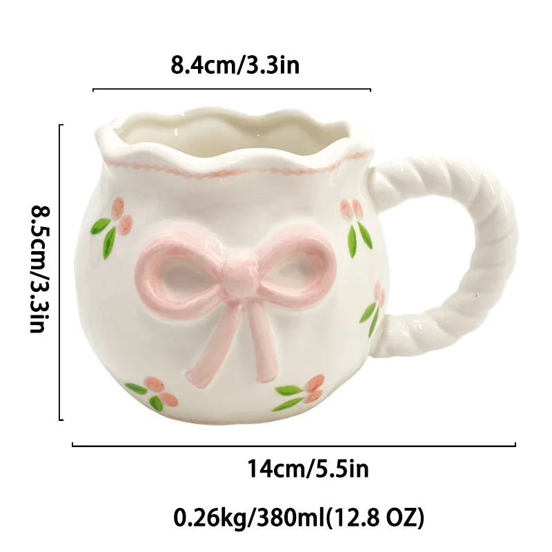 380ML French Ceramic Coffee Cup Cute Hand Pinch Bow Mug Afternoon Tea Ceramic Flower Tea Cup Household Breakfast Milk Mug Gifts