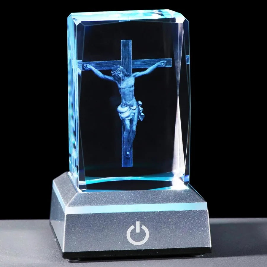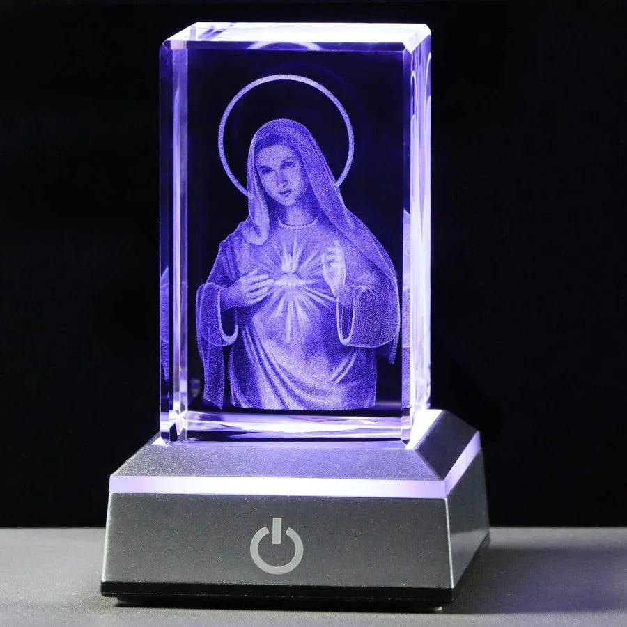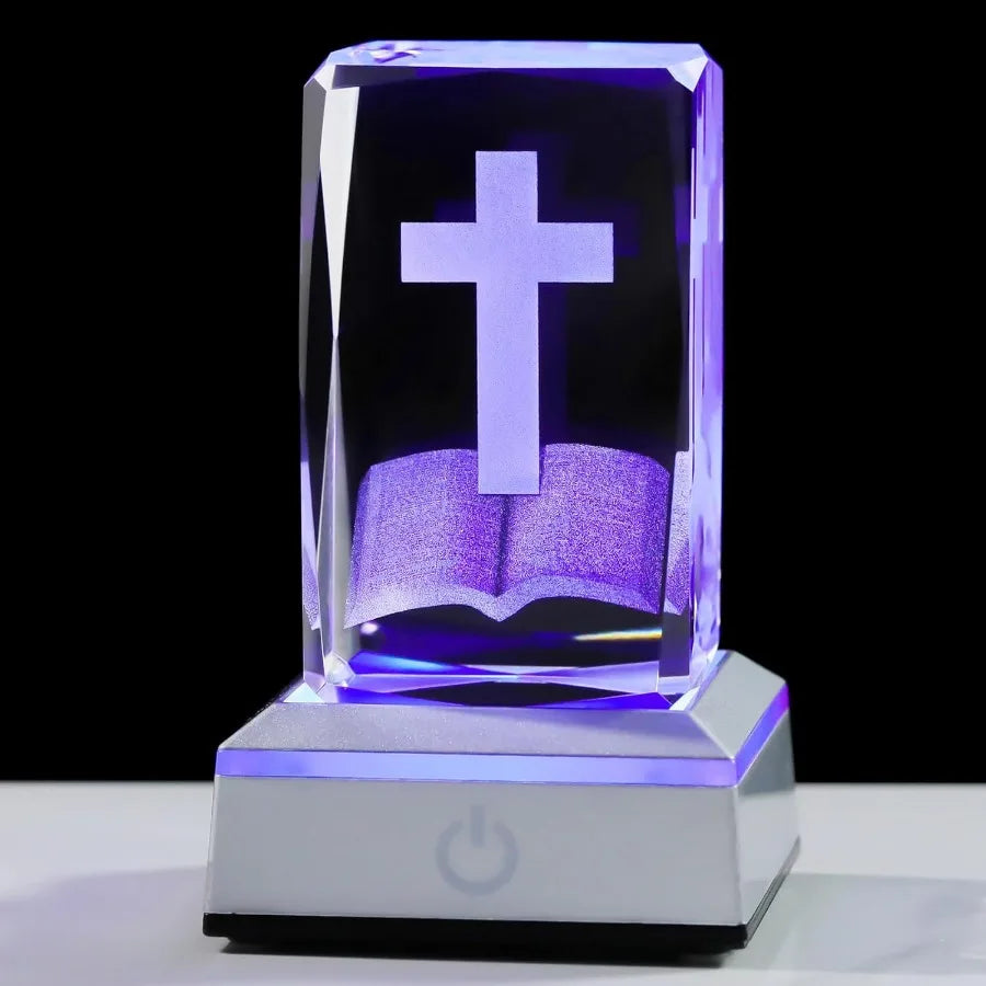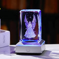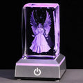 3D Crystal Guardian Angel Figurine with Colorful Light Base, Laser Engraved Glass Angel Gifts, Collectible Figurines Statues