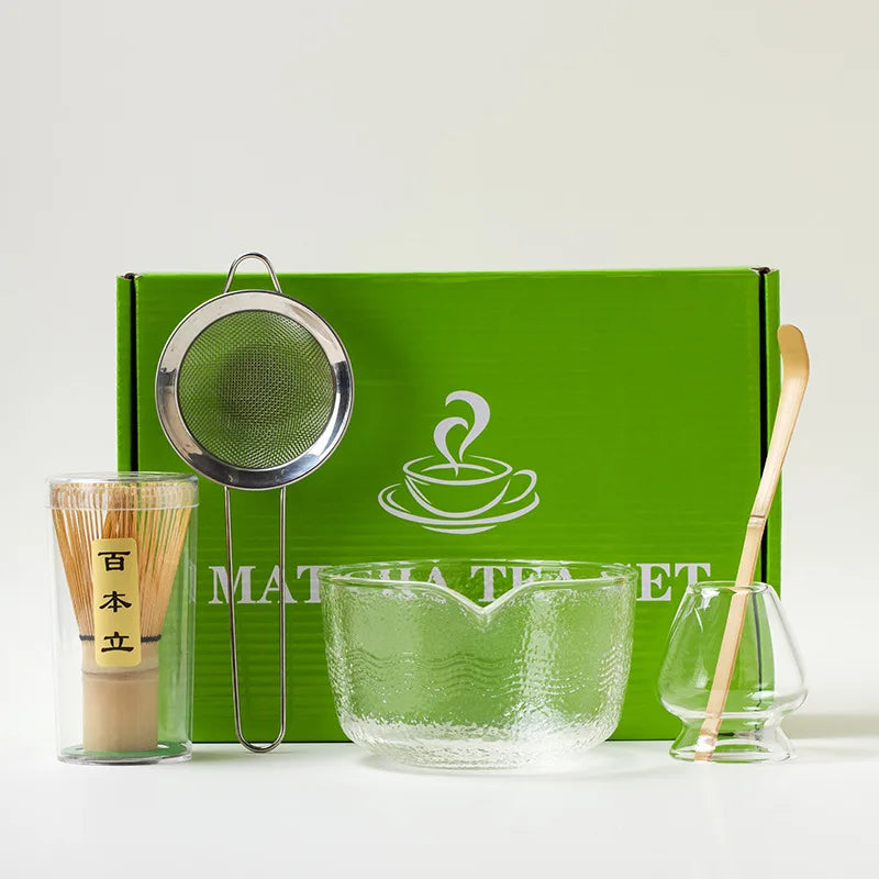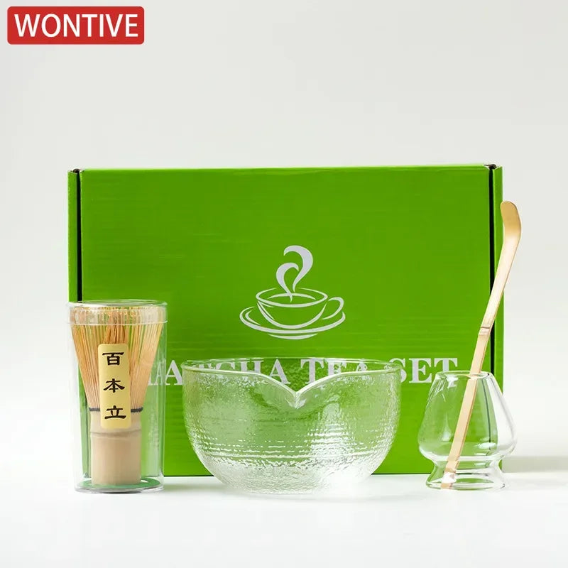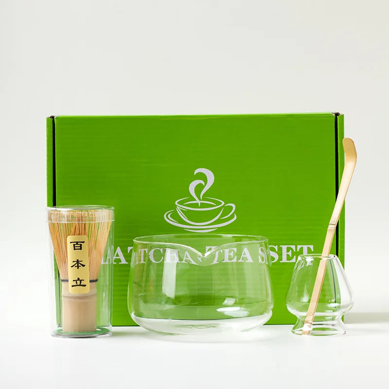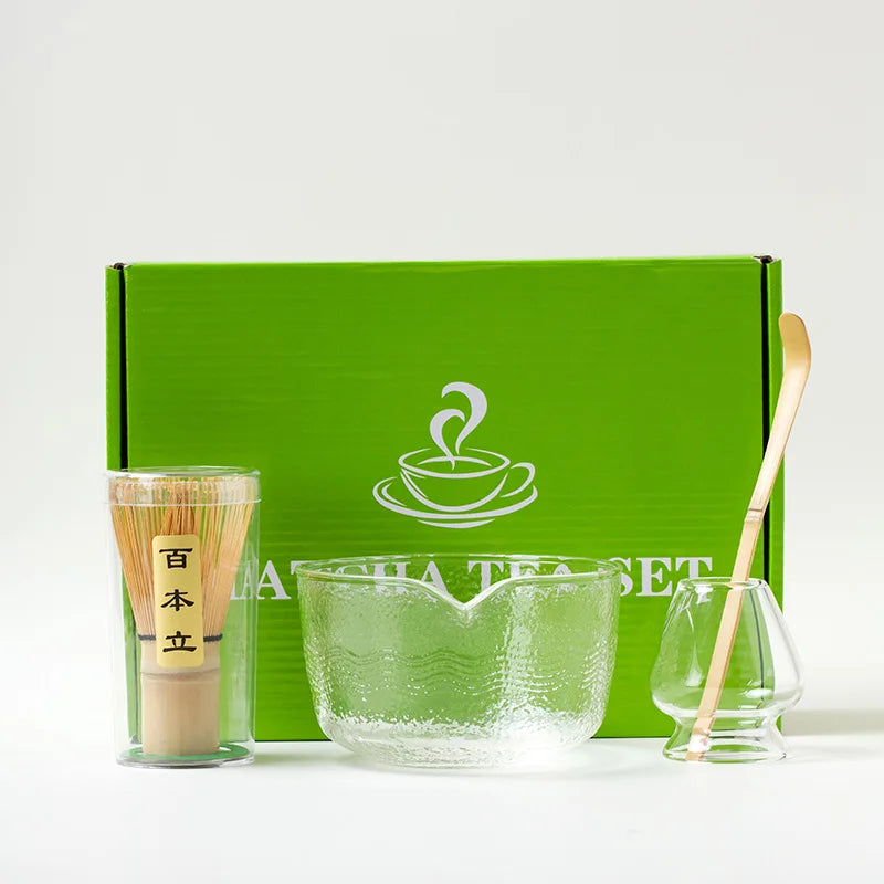 4/5Pcs Japanese Matcha Set with glass Bowl Bamboo Matcha Whisk and Tea Scoop for Tea Lovers Gifts Tea-making Tools Accessories