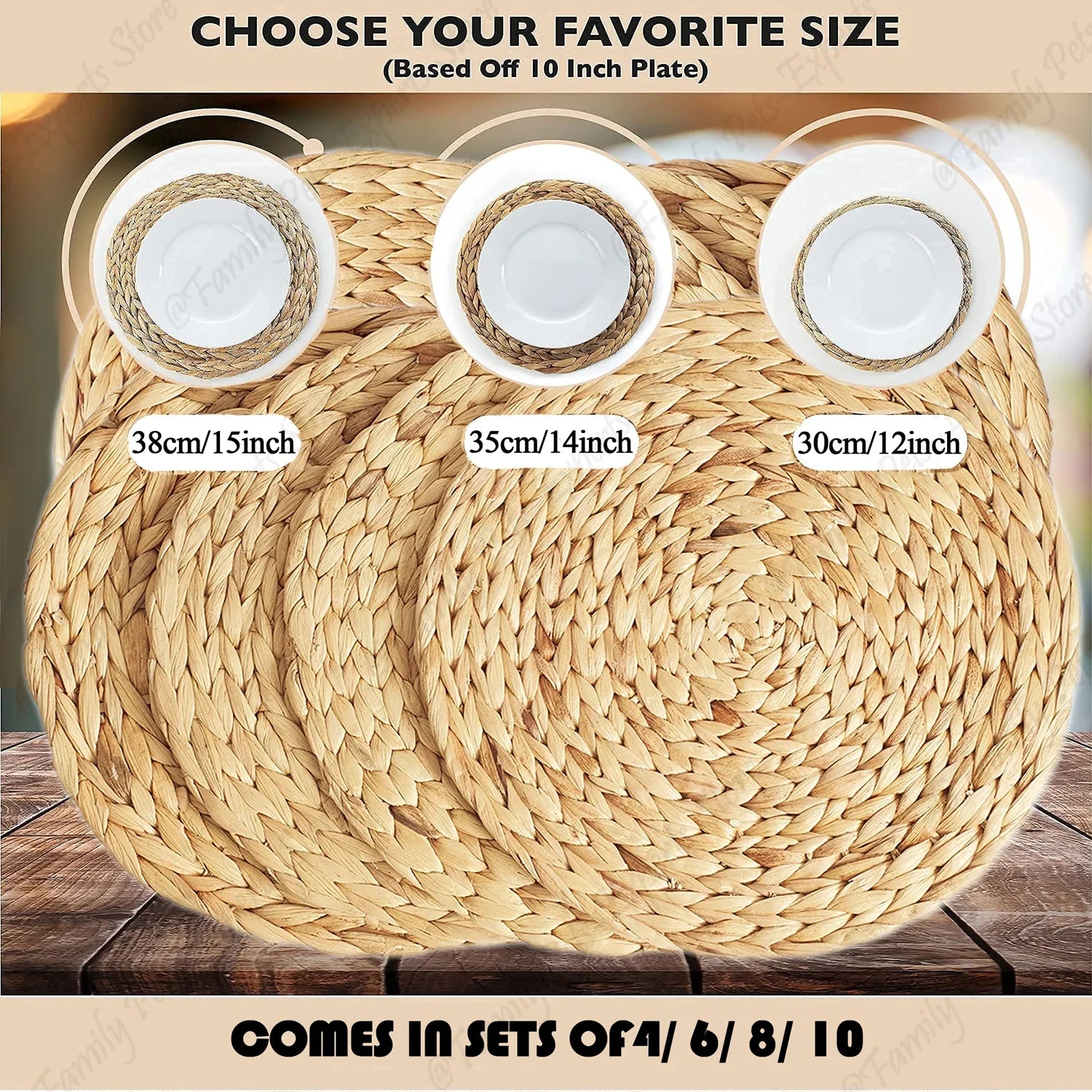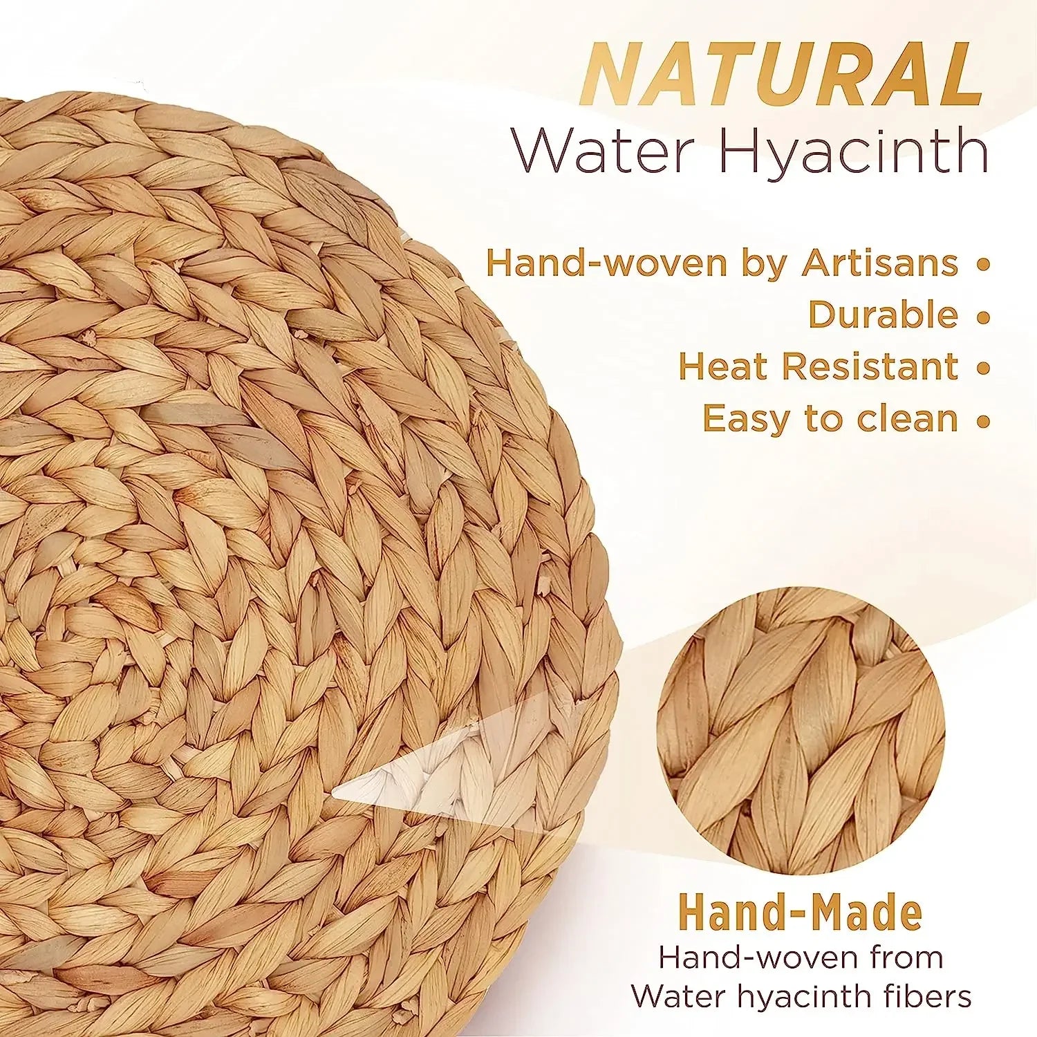 4/6/8Packs Woven Placemats Round Natural Water Hyacinth Table Mats Handmade Heat Resistant Non-Slip Weave Cup Mats for Dinning