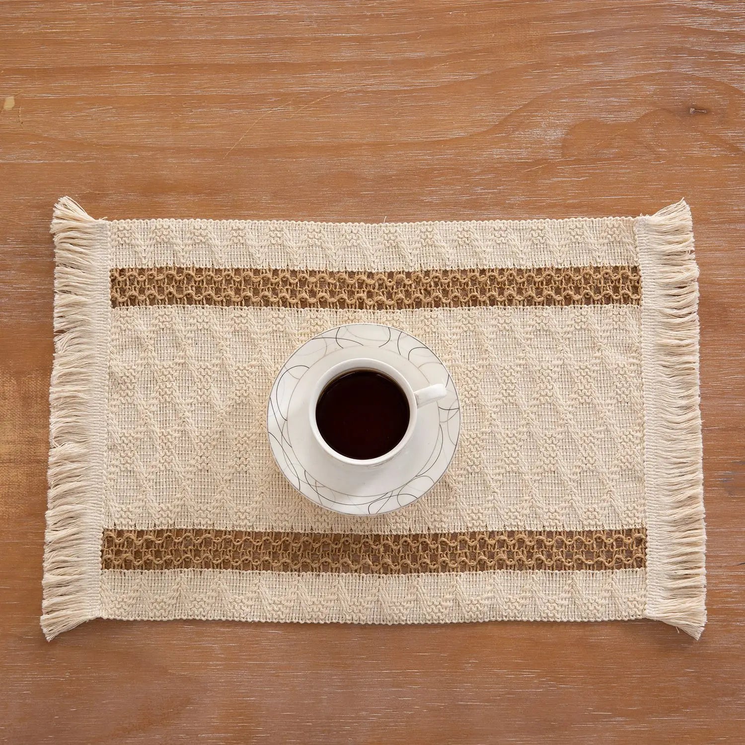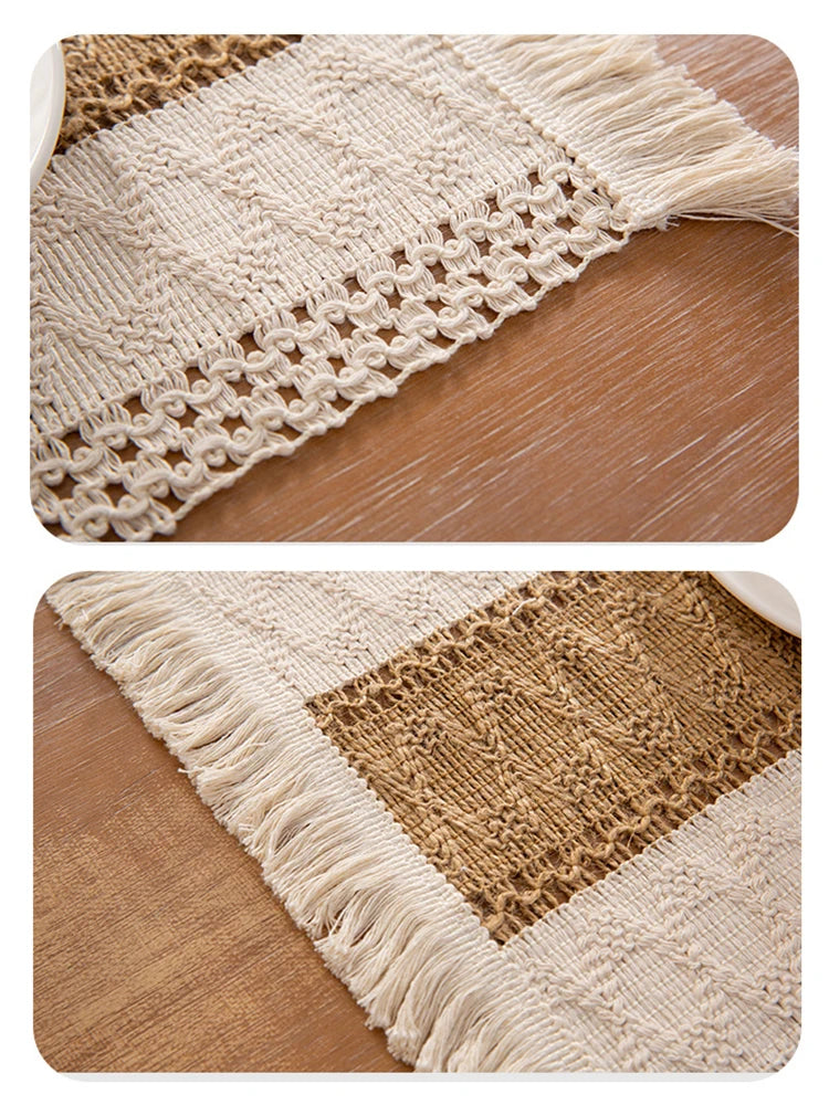 4/6pcs Boho Placemats Set Natural Cotton Burlap Farmhouse Place Mats with Tassels for Home Dining Wedding Table Kitchen Decor