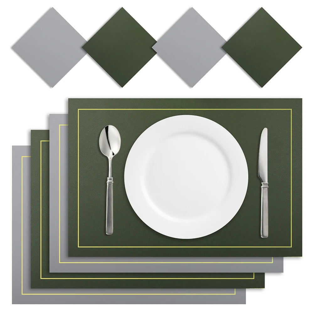 4/8pc Set Placemats with Coaster PU Leather Nordic Style Tableware Pad Coffee Table Non-Slip Waterproof Washable Kitchen Mats