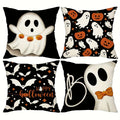 4-Pack Halloween Throw Pillow Covers 45X45cm Ghost Pumpkin Bat Pattern Ideal for Sofa, Bed, Car, Living Room Home Decor