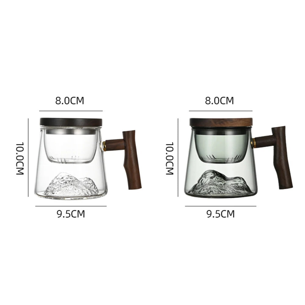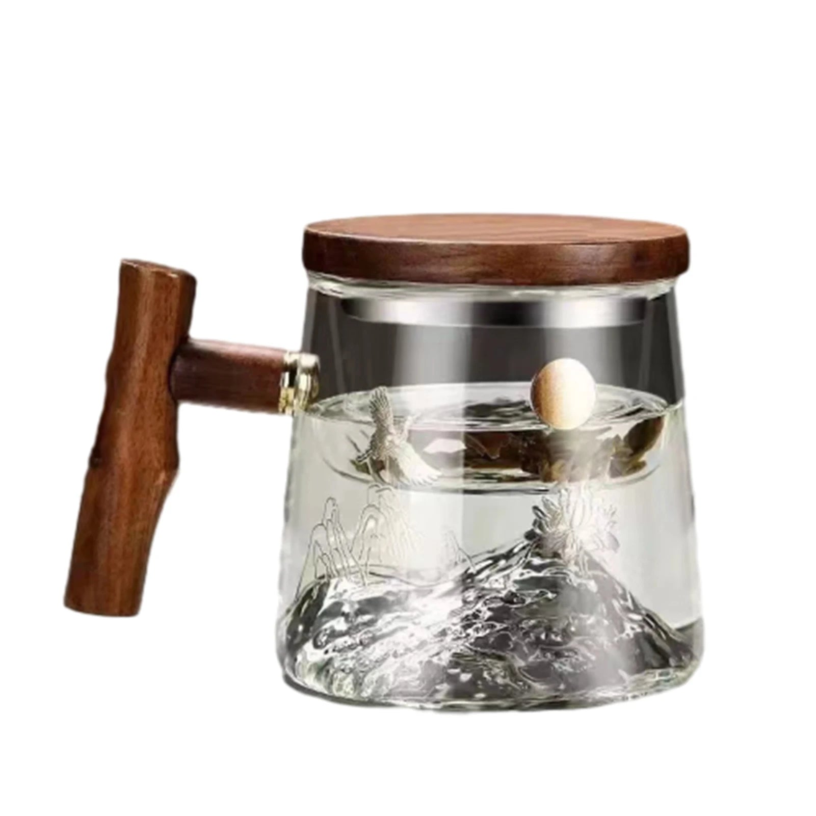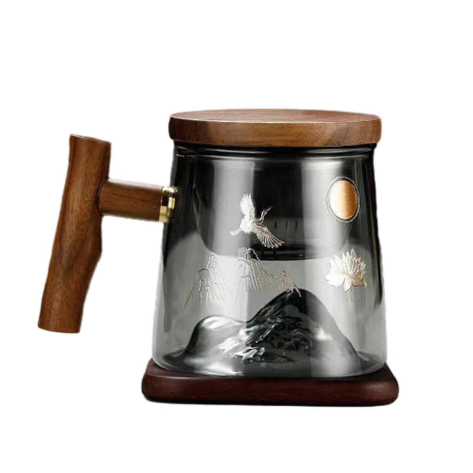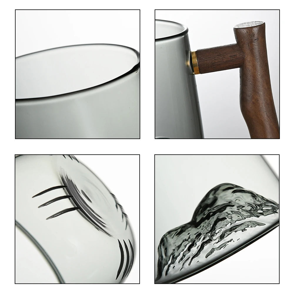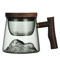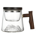 400ml Glass Tea Cup Chinese Far Mountain Design High Borosilicate Glass Tea Cup Walnut Anti Scald Handle Thickened Cup
