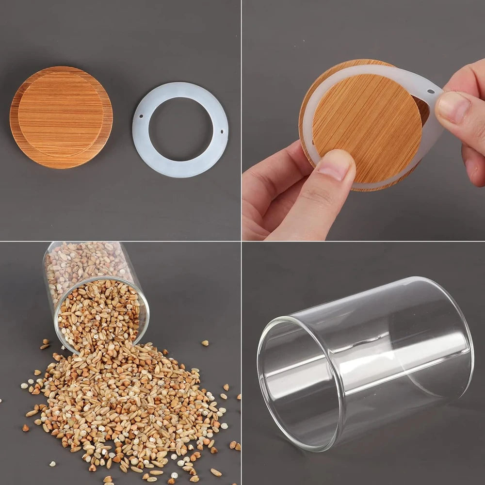 4oz Glass Spice Jars with Bamboo Lids Clear Borosilicate Glass Food Storage Containers with Wooden Airtight Lids, Cylinder Glass