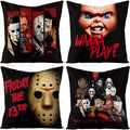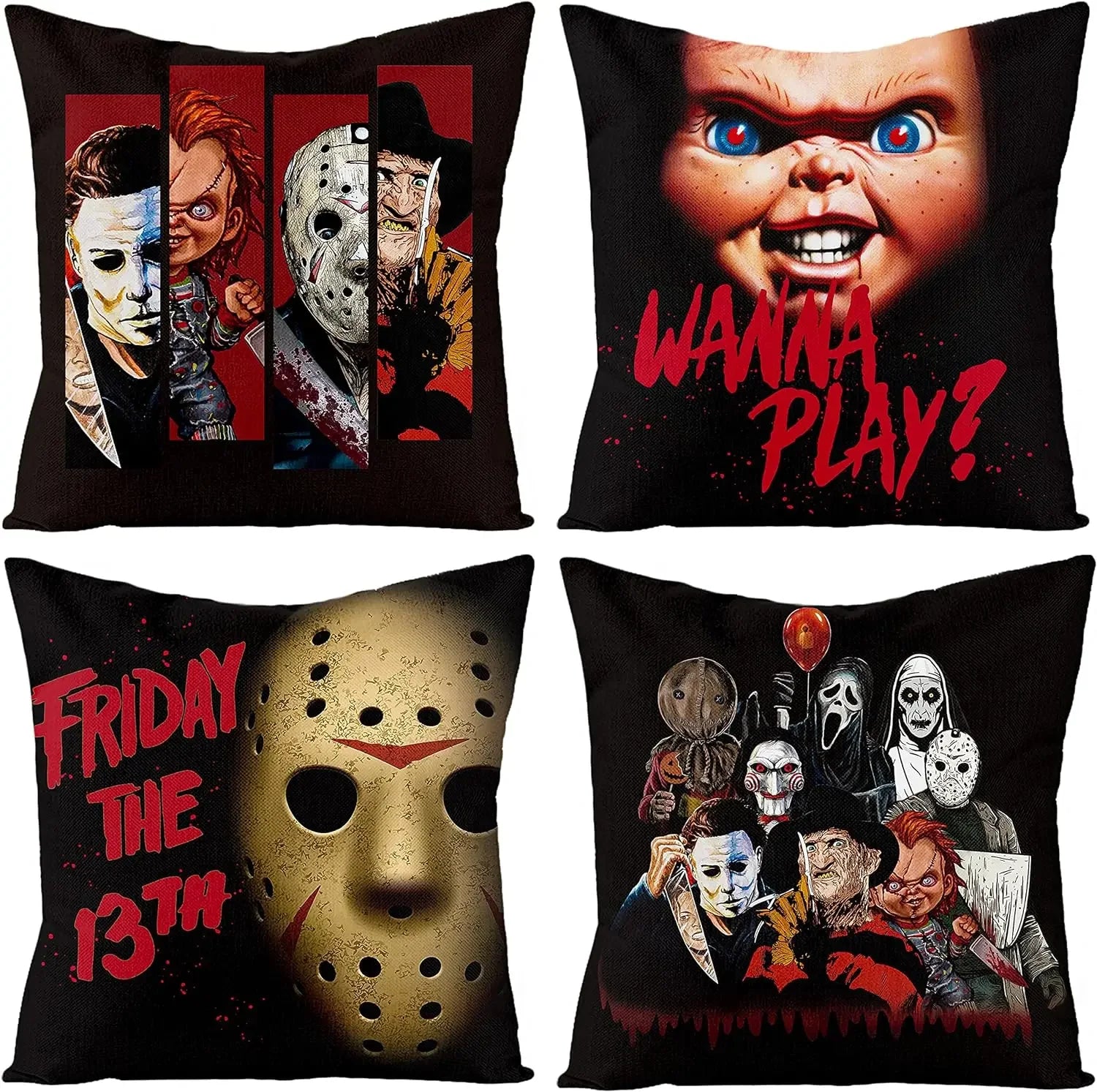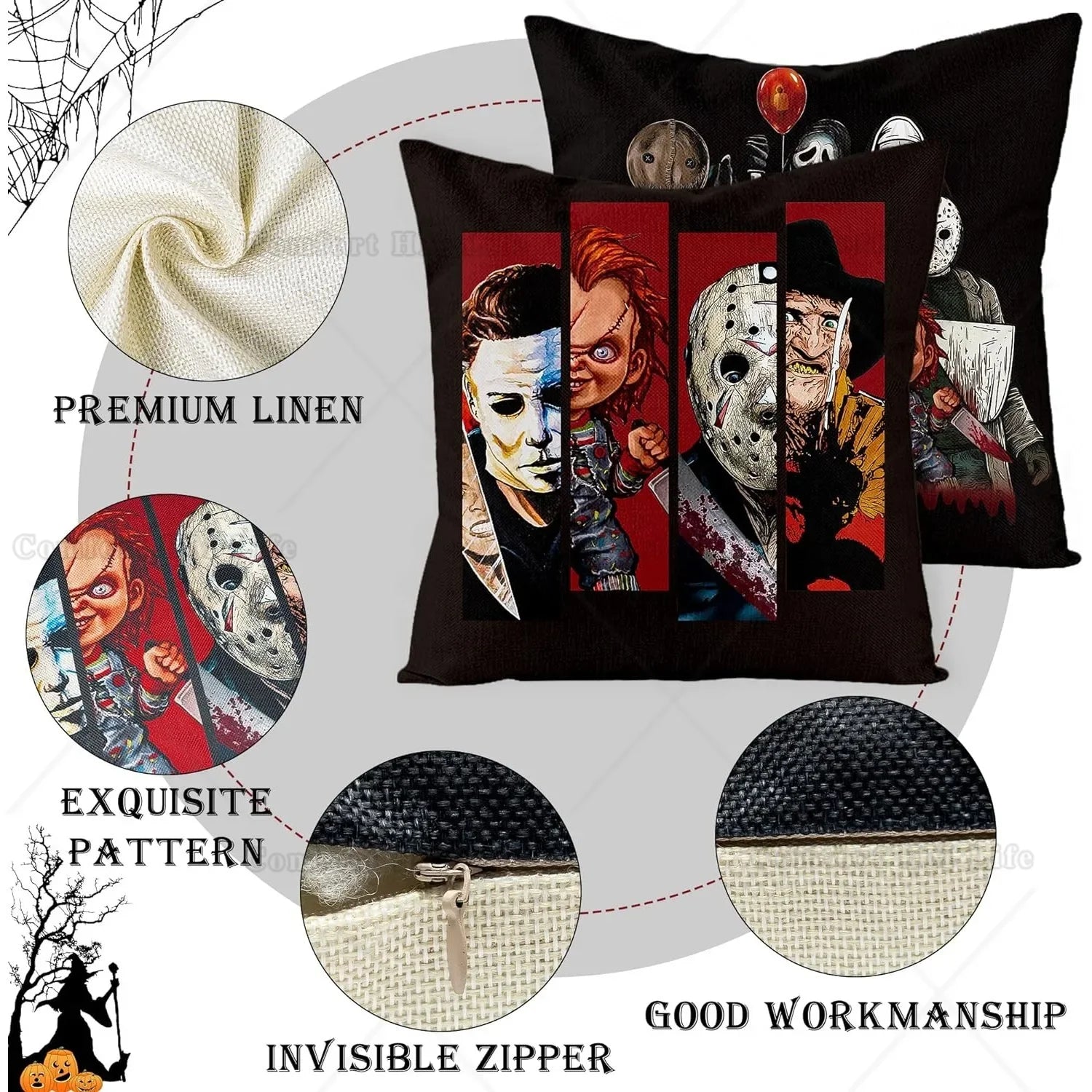 4Pcs Horror Classic Movie Characters Pillow Covers 18x18 Inch Halloween Throw Pillowcases Linen Decorative Square Cushion Covers