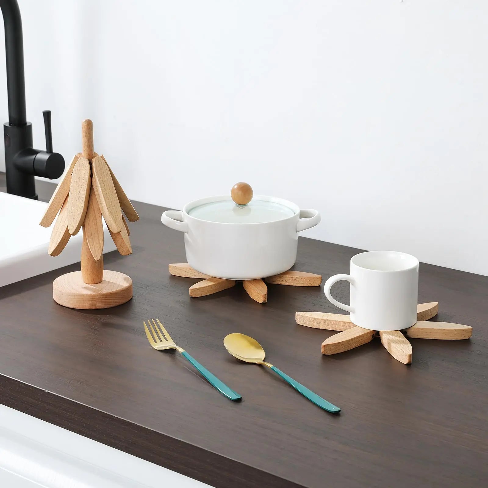 4PCS Tree Design Stand Wooden Trivets Decorative Anti Scald Heat Resistant Table Mat Coaster Wood Placemats Pot