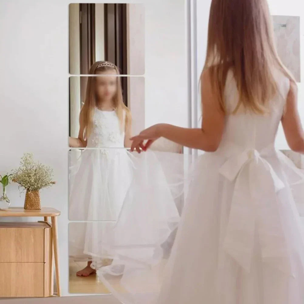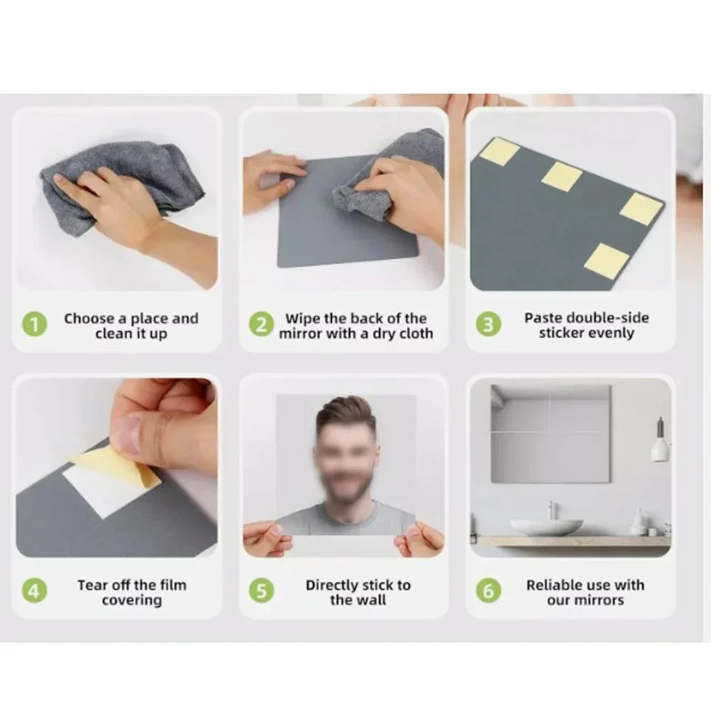 4PcsAcrylic Mirrors Set Self- Adhesive Mirror Tiles 2mm Thick Flexible Unbreakable Mirror Stickers Reflective Square Mirror Wall