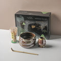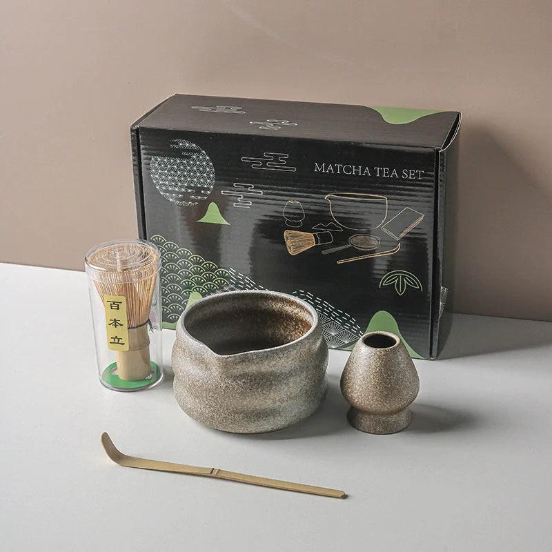 This complete 4-piece kit includes a handcrafted ceramic bowl, a bamboo whisk (chasen), a bamboo spoon (chashaku), and a scoop for perfectly blending authentic matcha tea.