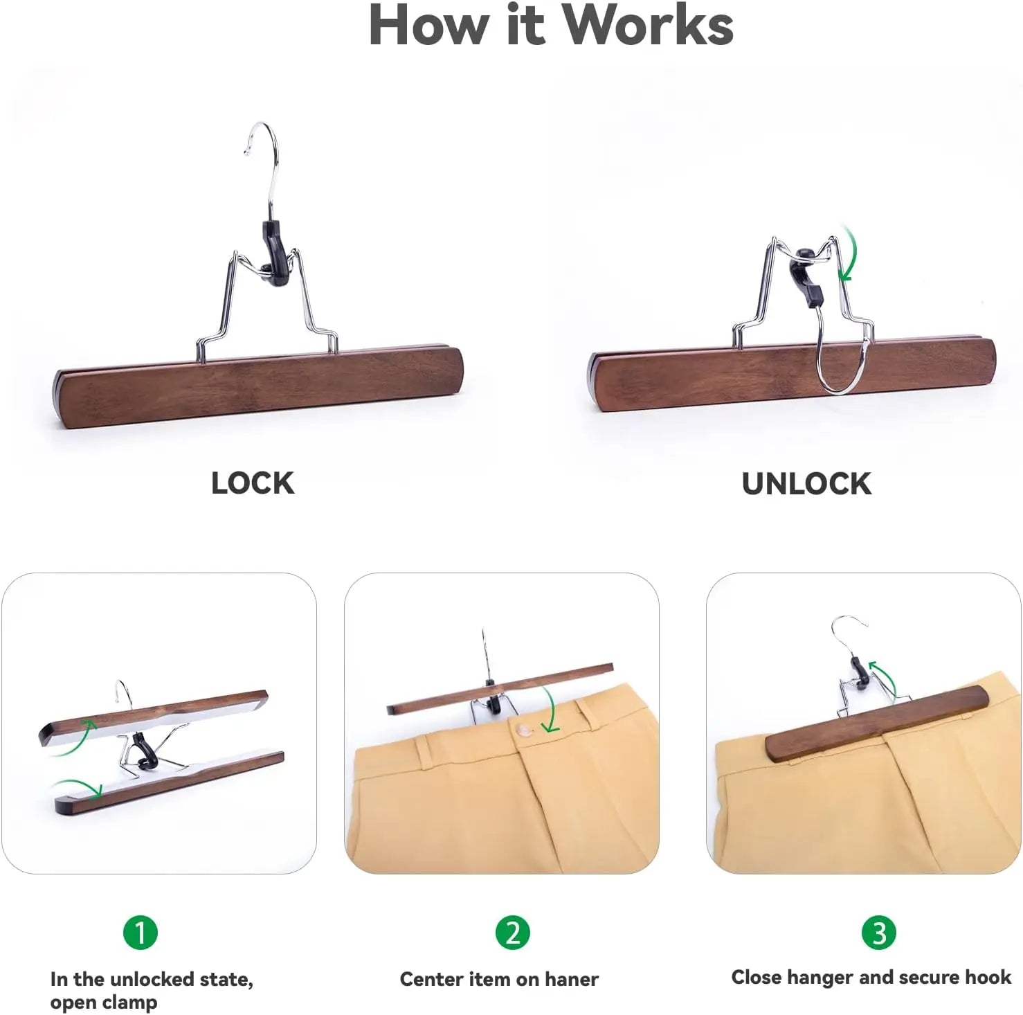 5-30PCS Wooden Pants Skirt Hangers Smooth Solid Wood Non Slip Jeans Slack Clamp Hangers Hair Extension Hangers with Swivel Hook