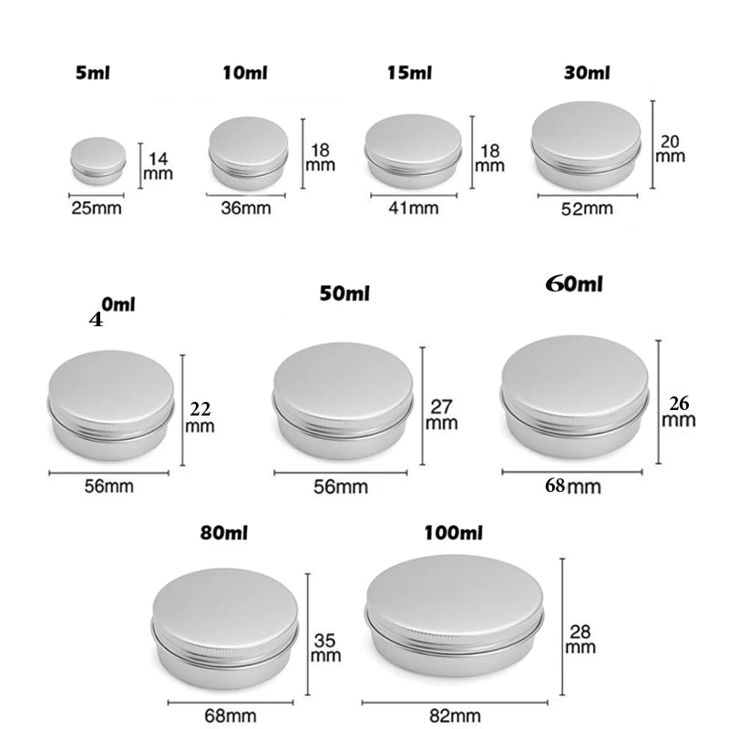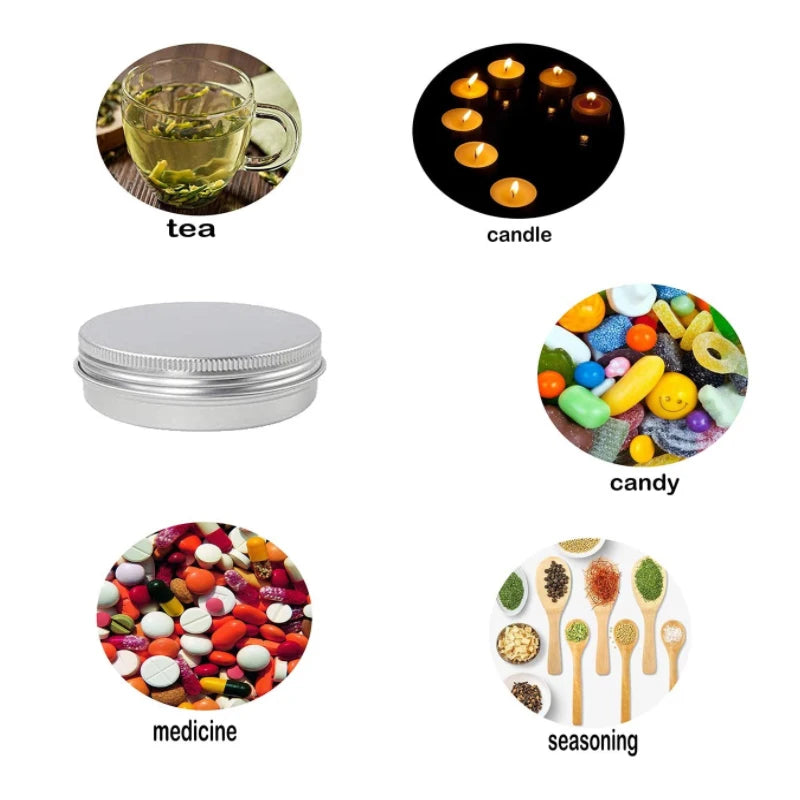 5-50Pcs 5ml-100ml Empty Silver Aluminum Tins Cans Screw Top Round Candle Spice Tins Cans with Screw Lid Containers