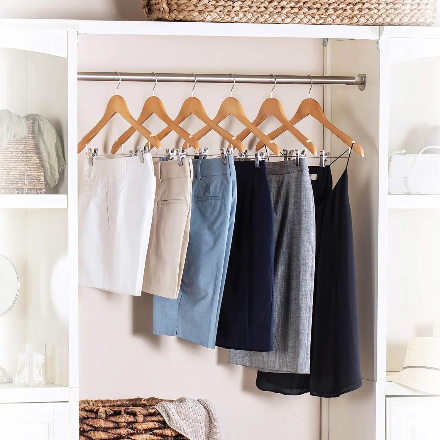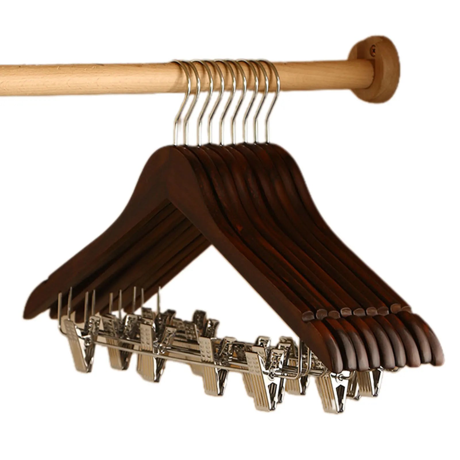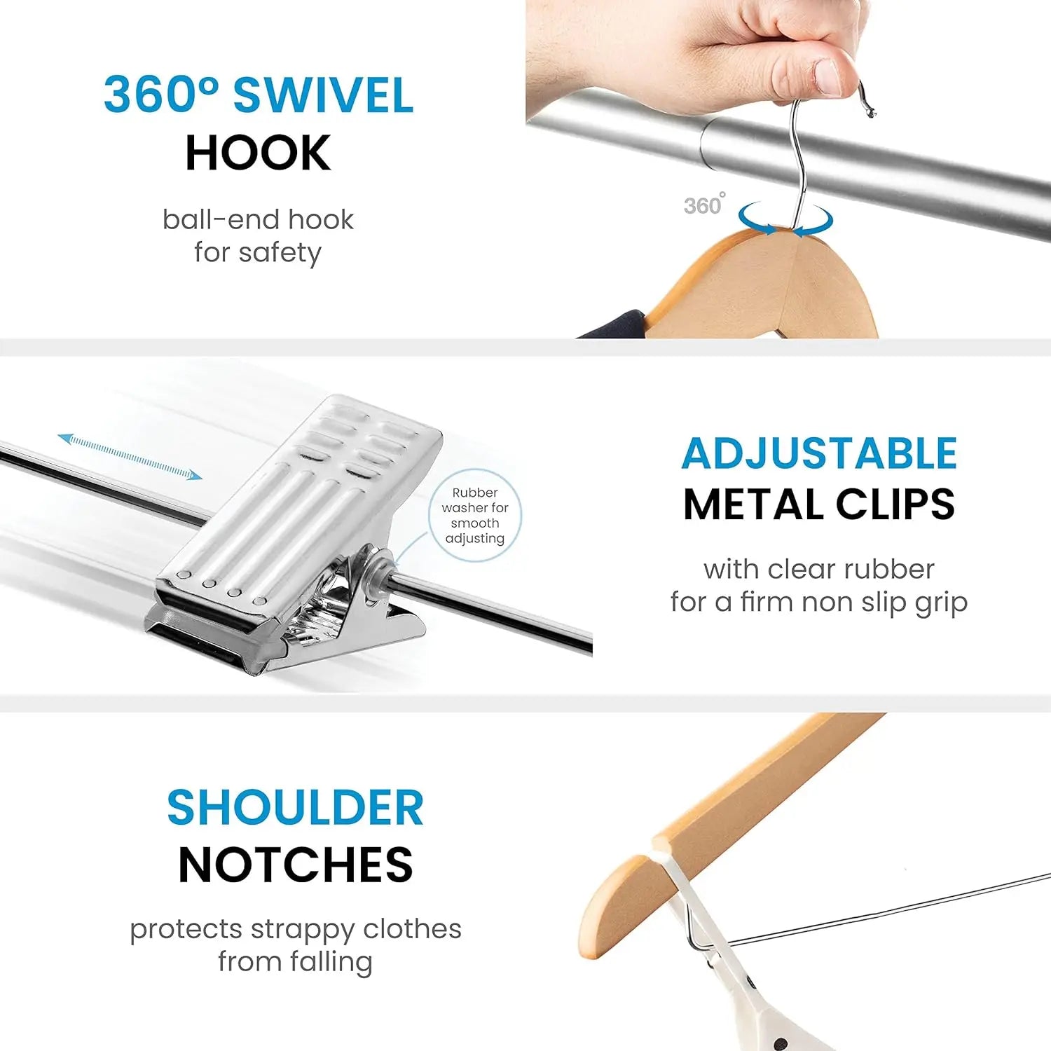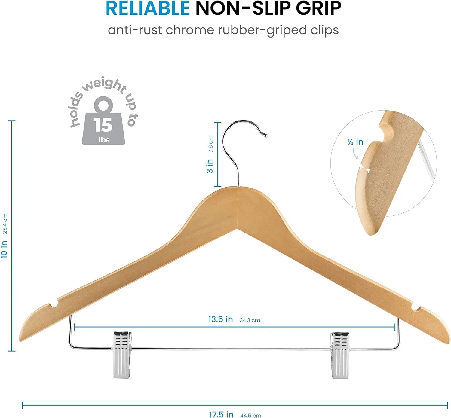5 Pack High-Grade Wooden Suit Hangers with Adjustable Metal Clips 360° Swivel Hook Shoulder Notches for Dress Coat Blouse Jacket