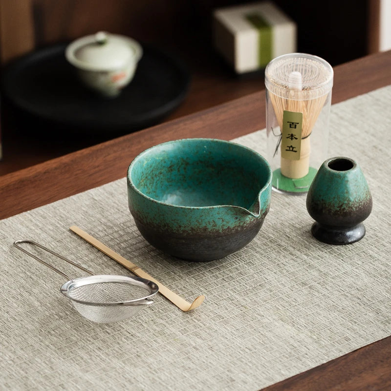 Matcha Tea Ceremony Set – 5-Piece Ceramic Bowl, Bamboo Whisk, Spoon & Accessories | NaturalBuiltHome