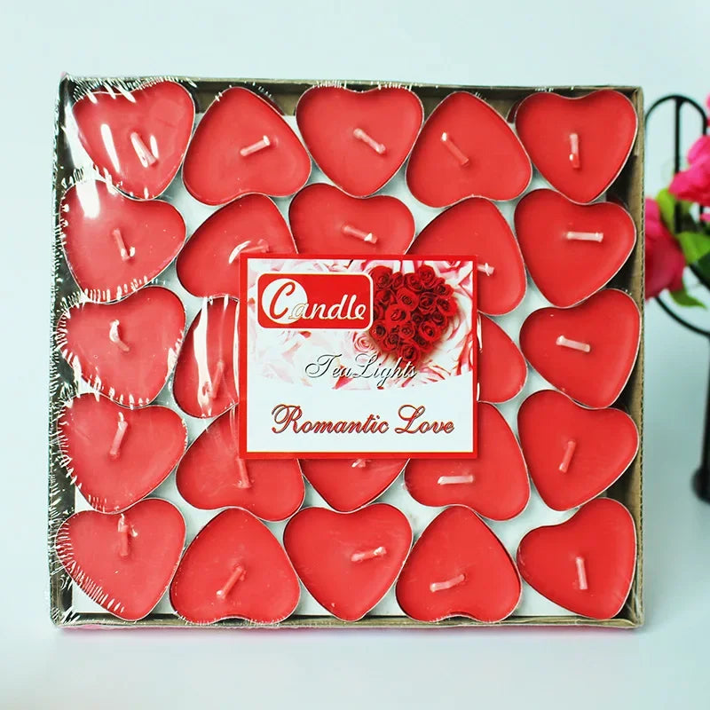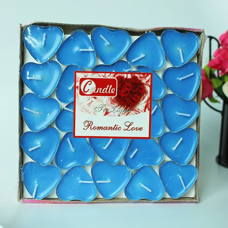 50pcs Heart Aromatherapy Candle Birthday Romantic Smokeless Candle Gift Props Wedding Decoration Round Tea Candle Light Tea Wax