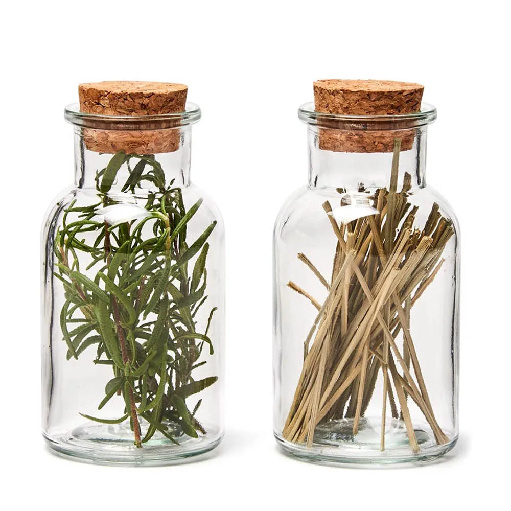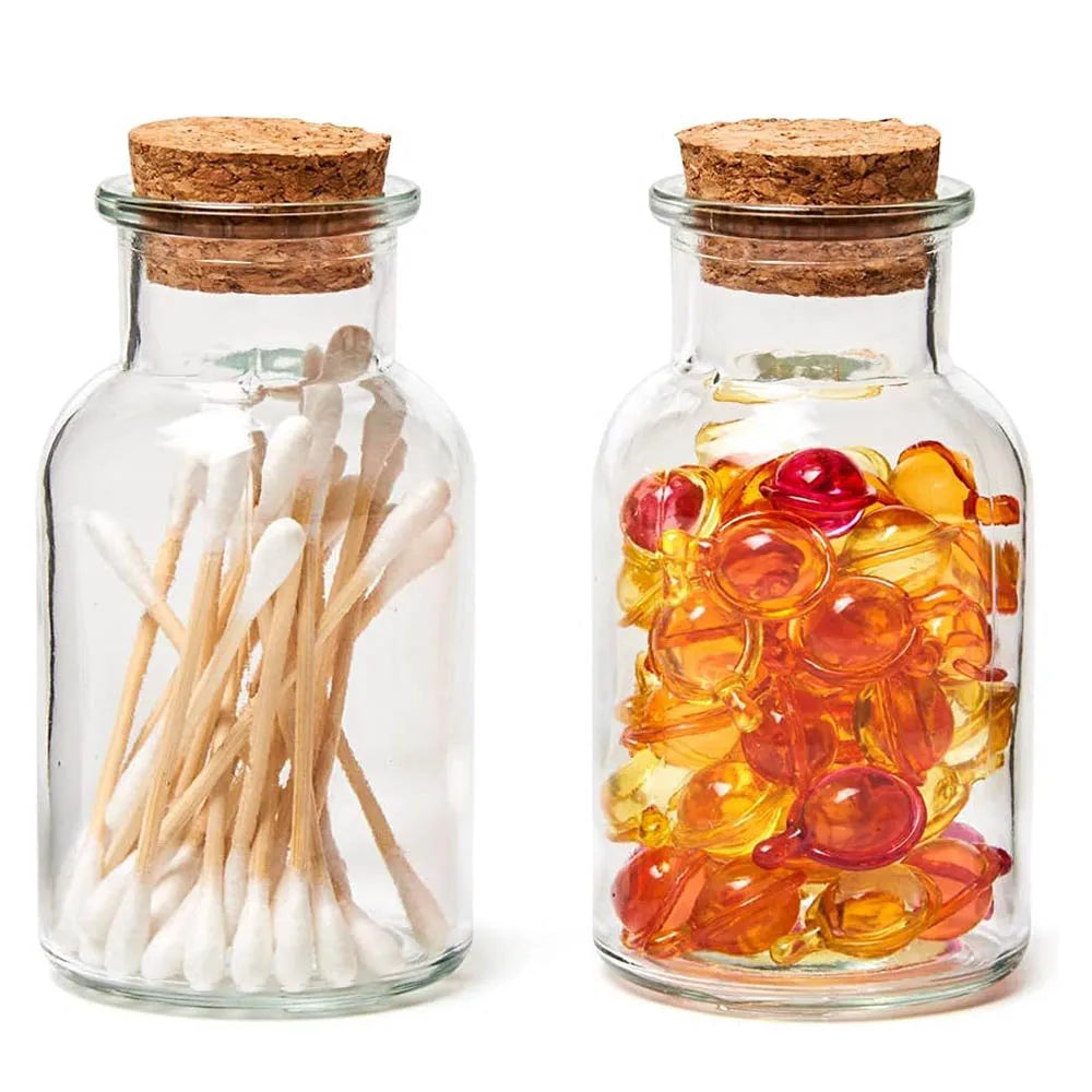 5oz Spice Jars - Clear Glass Bottles with Cork Lids, Reusable Round Containers for Herbs, Teas, Seasonings, Party Favors, Candy