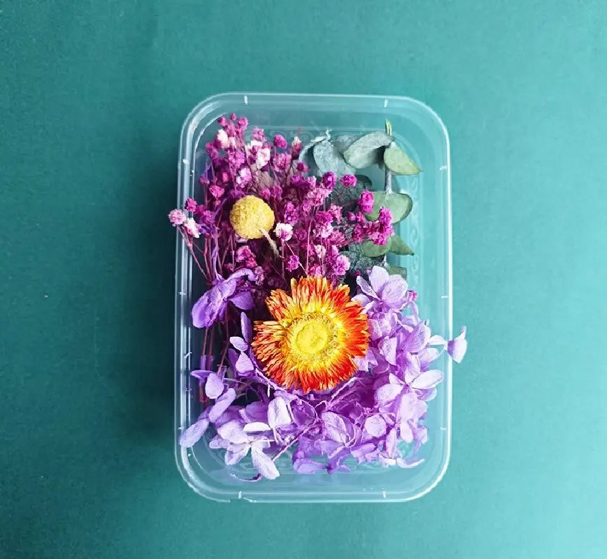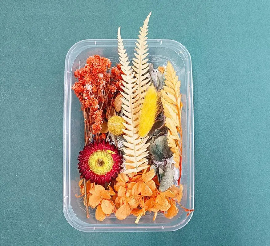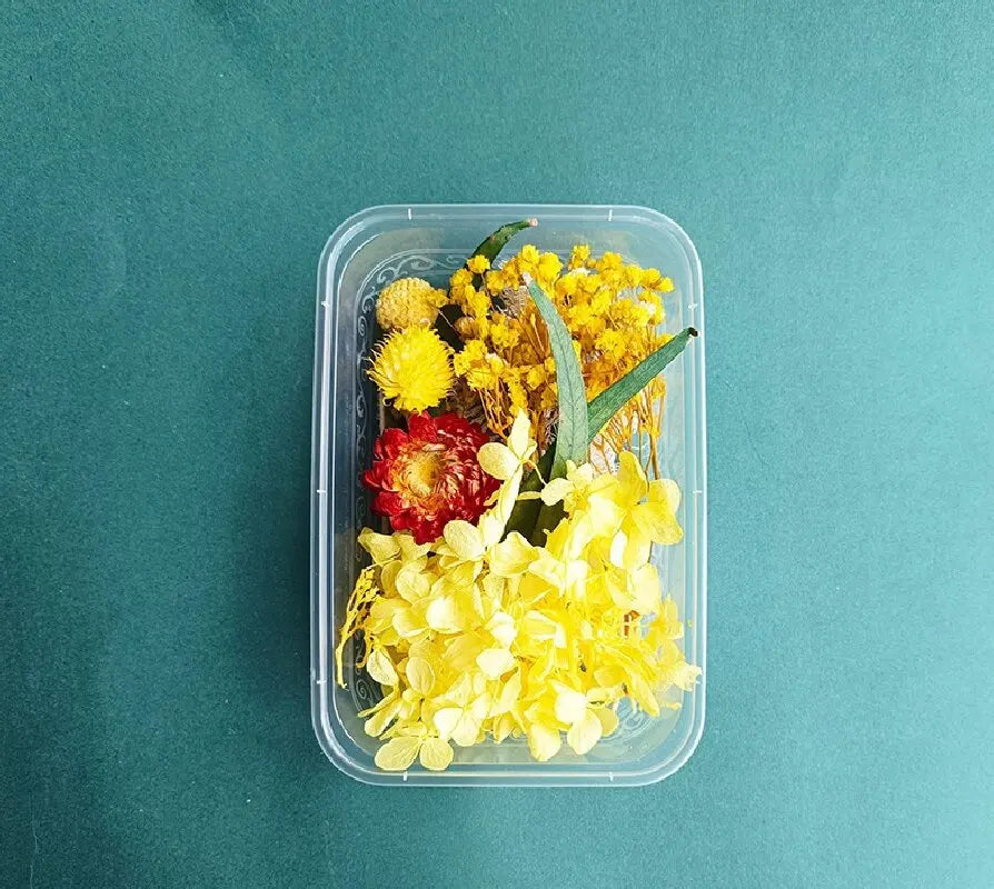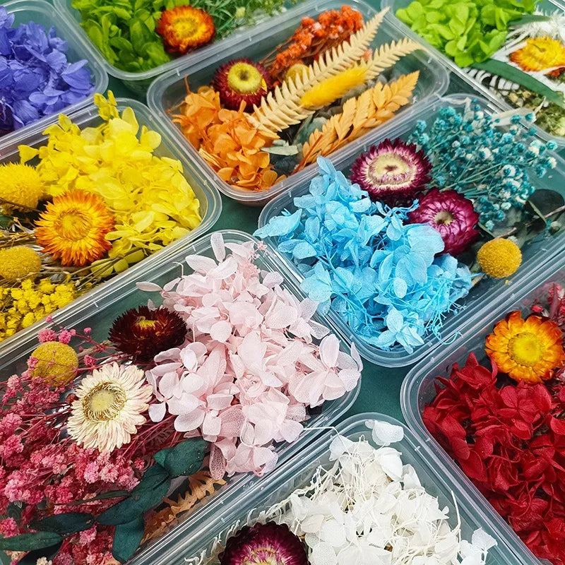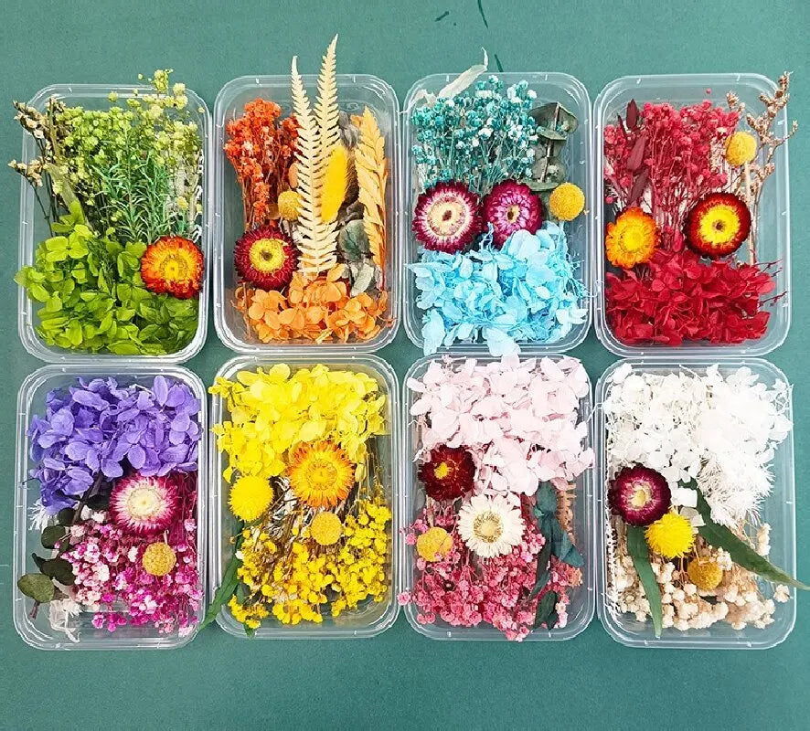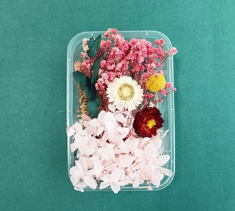 5Pcs Boxed Natural Dried Flowers Floating Floral Hydrangea Flower Photo Frame Round Fan Pressing Flowers Handmade DIY Material