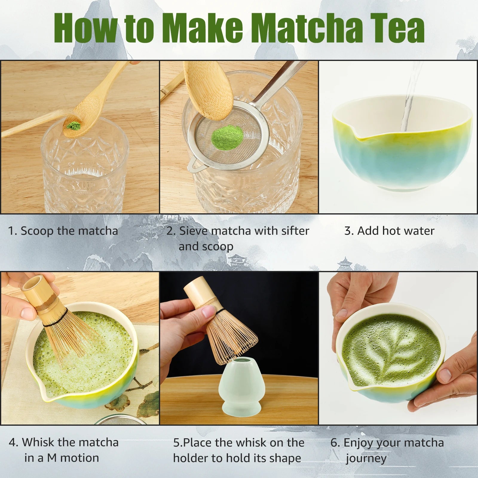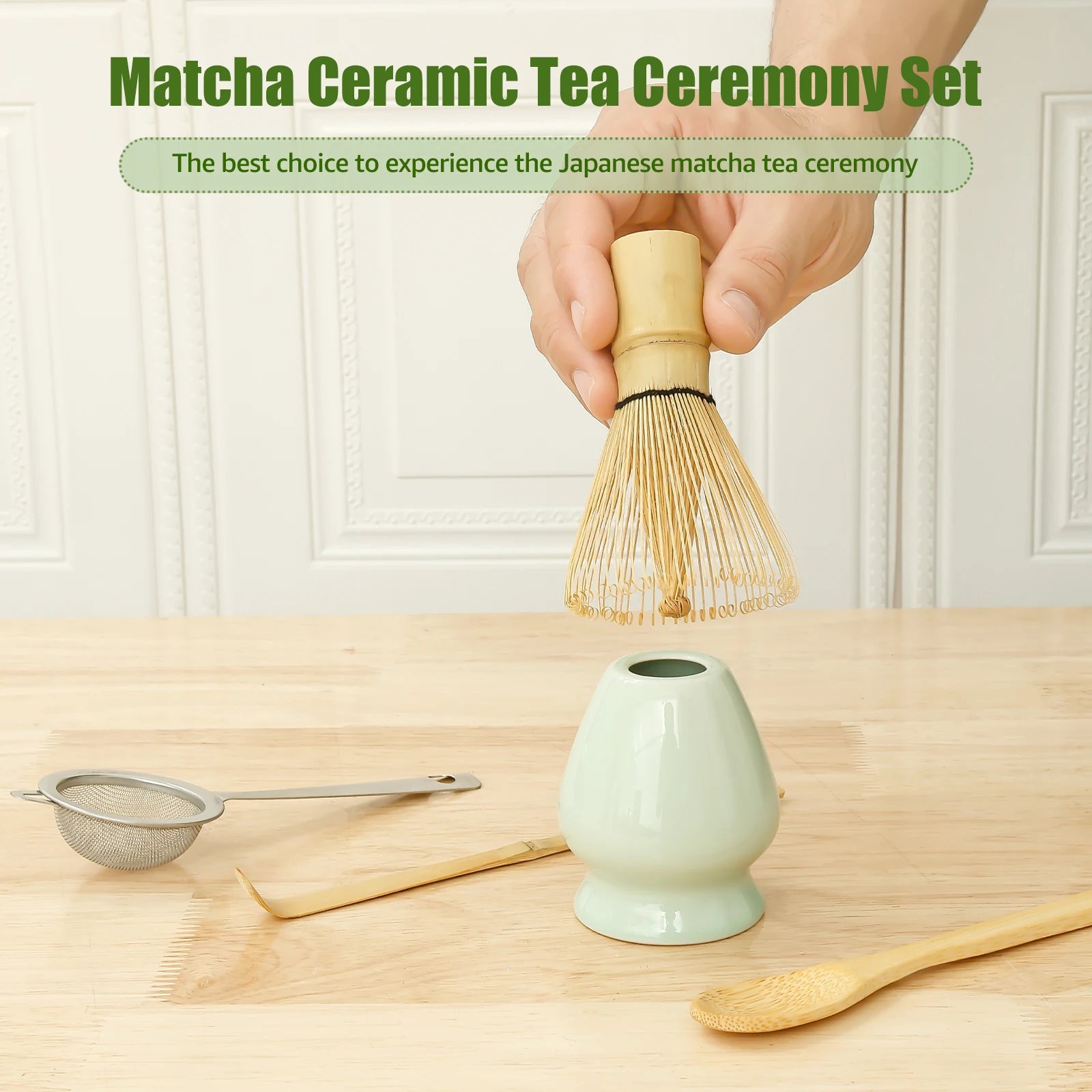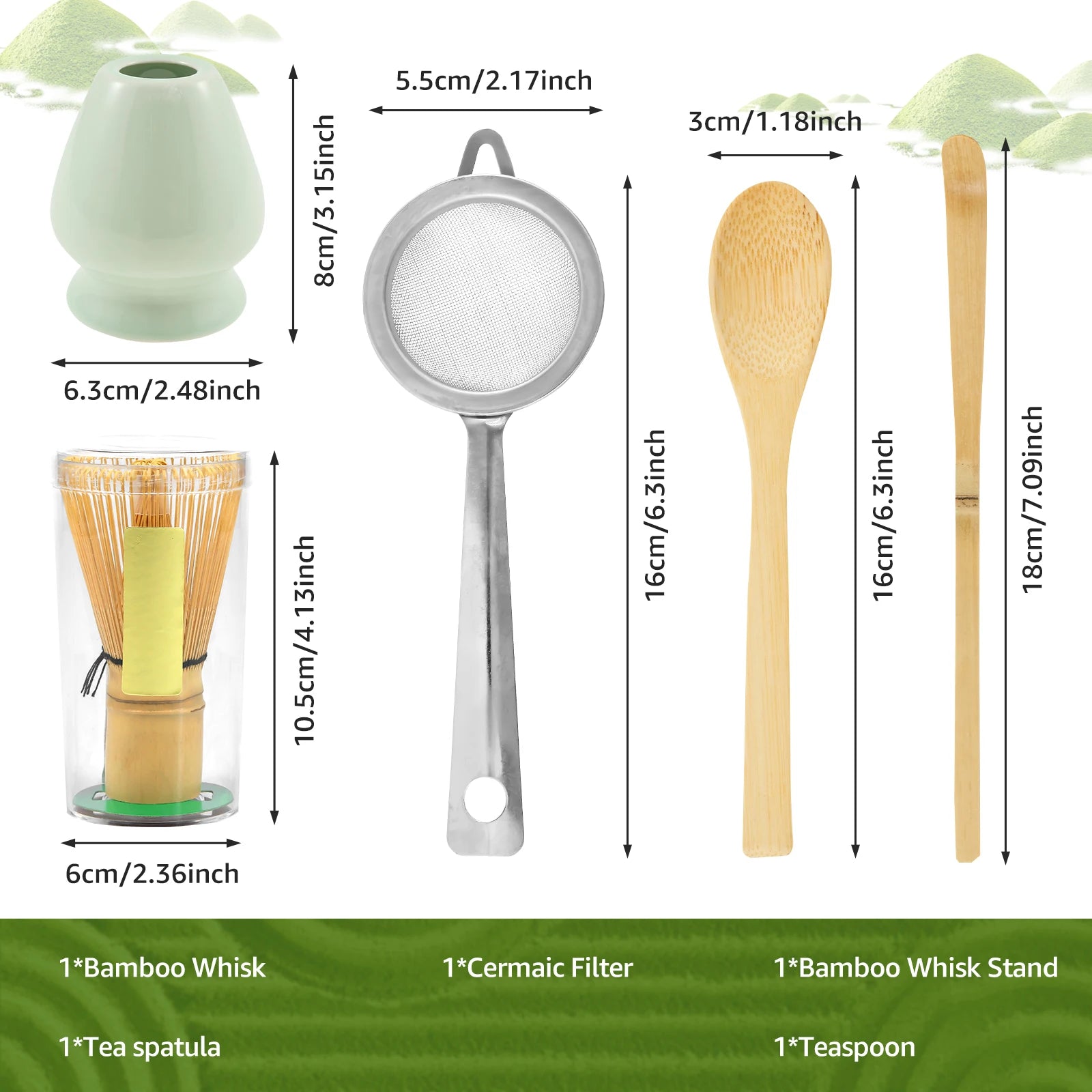 5Pcs Matcha Tea Making Tool Set Bamboo Matcha Whisk Set with Whisk Holder Spoon Scoop and Sifter for Tea Lovers